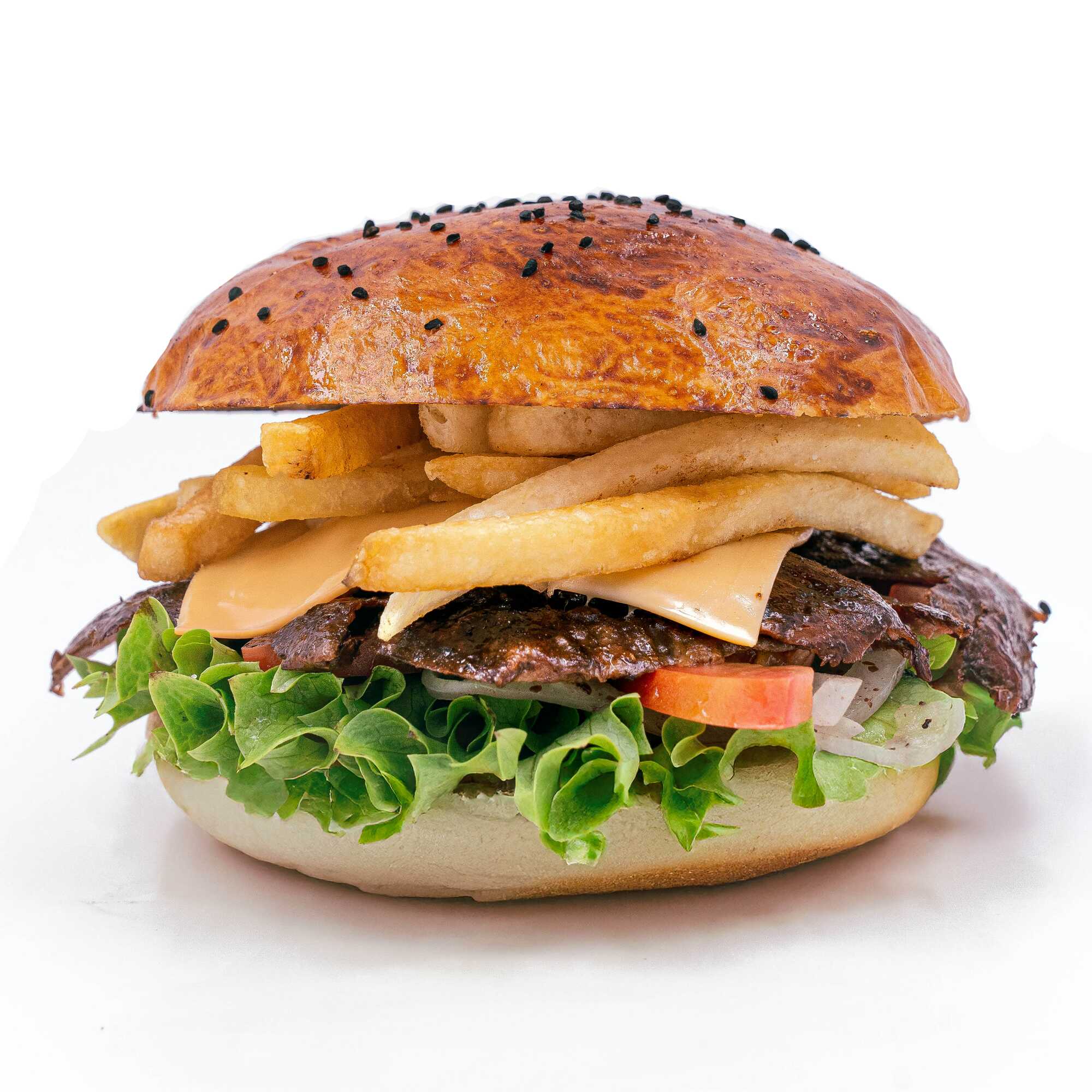 Pan de hamburgesa con carne de res, servido con cebolla, jitomate, lechuga y papas a la francesa. explora nuestra comida turca sabor 100 autentico. la preparacion de la carne es muy diferente a la de hamburgesa tradicional., un sabor totalmente diferente.
