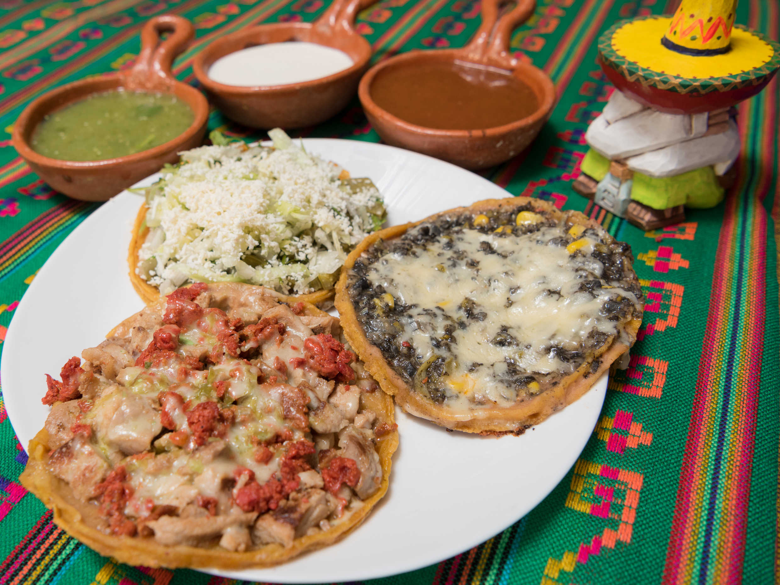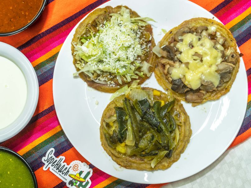 Sope Huach de chorizo y papa acompañado de lechuga y queso blanco.