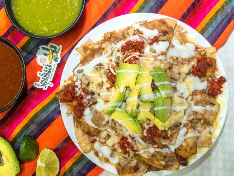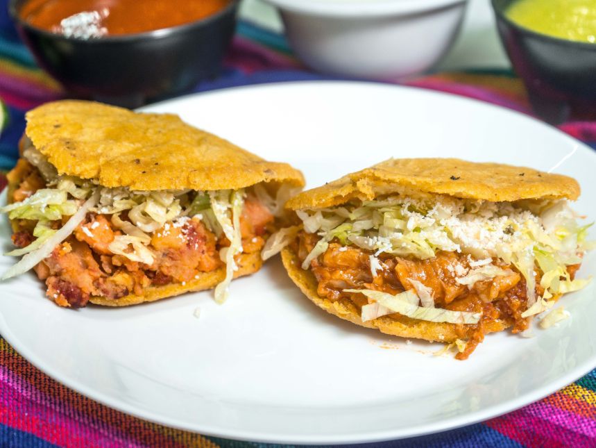 Sope Huach con pollo acompañado de lechuga y queso blanco.