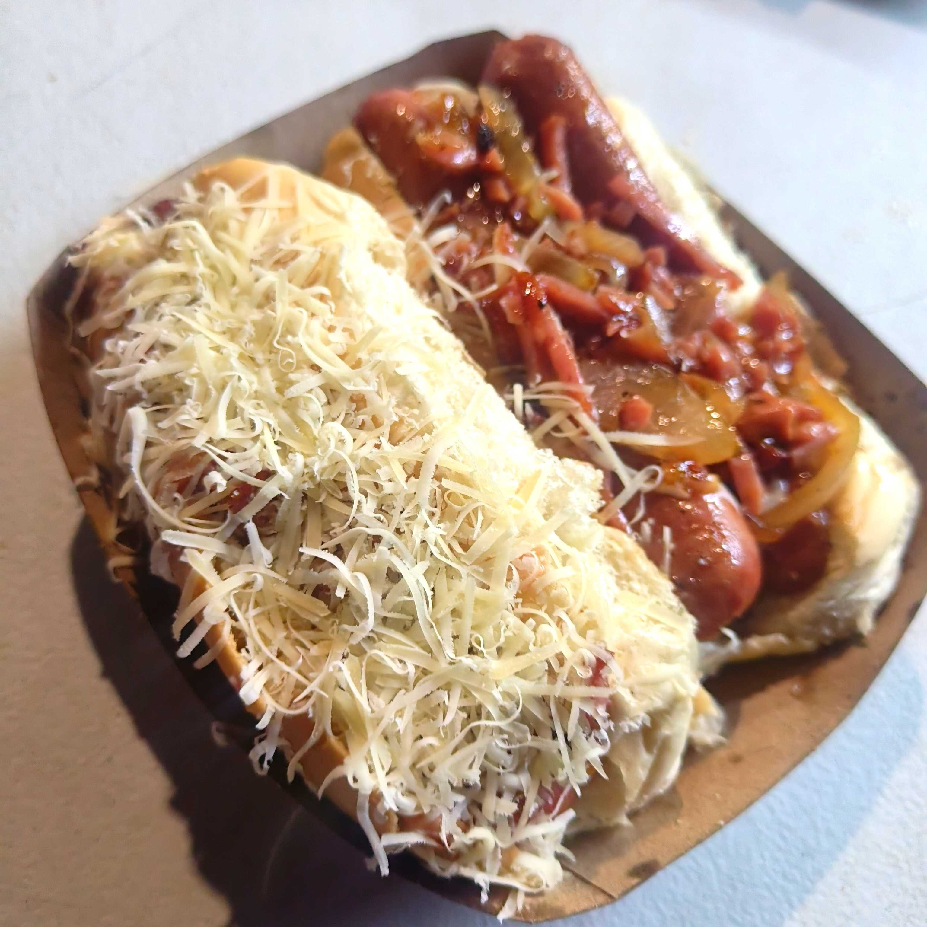 Pan hotdogs estándar tocino picado,cebolla, jamón, queso mozarella