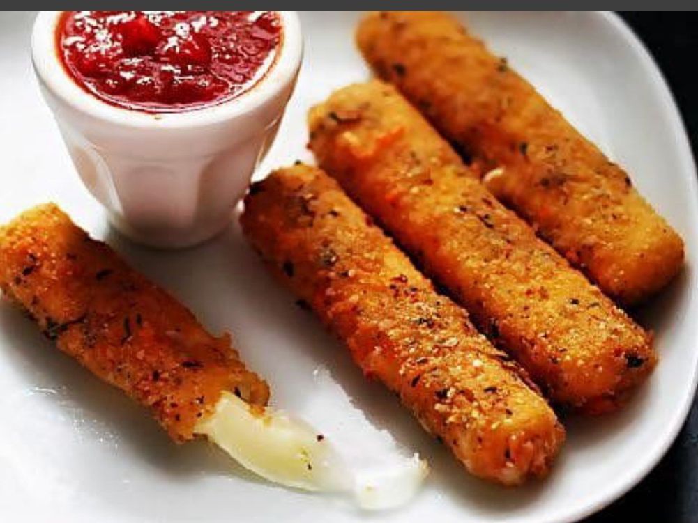 10 piezas de dedos de queso acompañados de jícama, zanahoria y ranch.