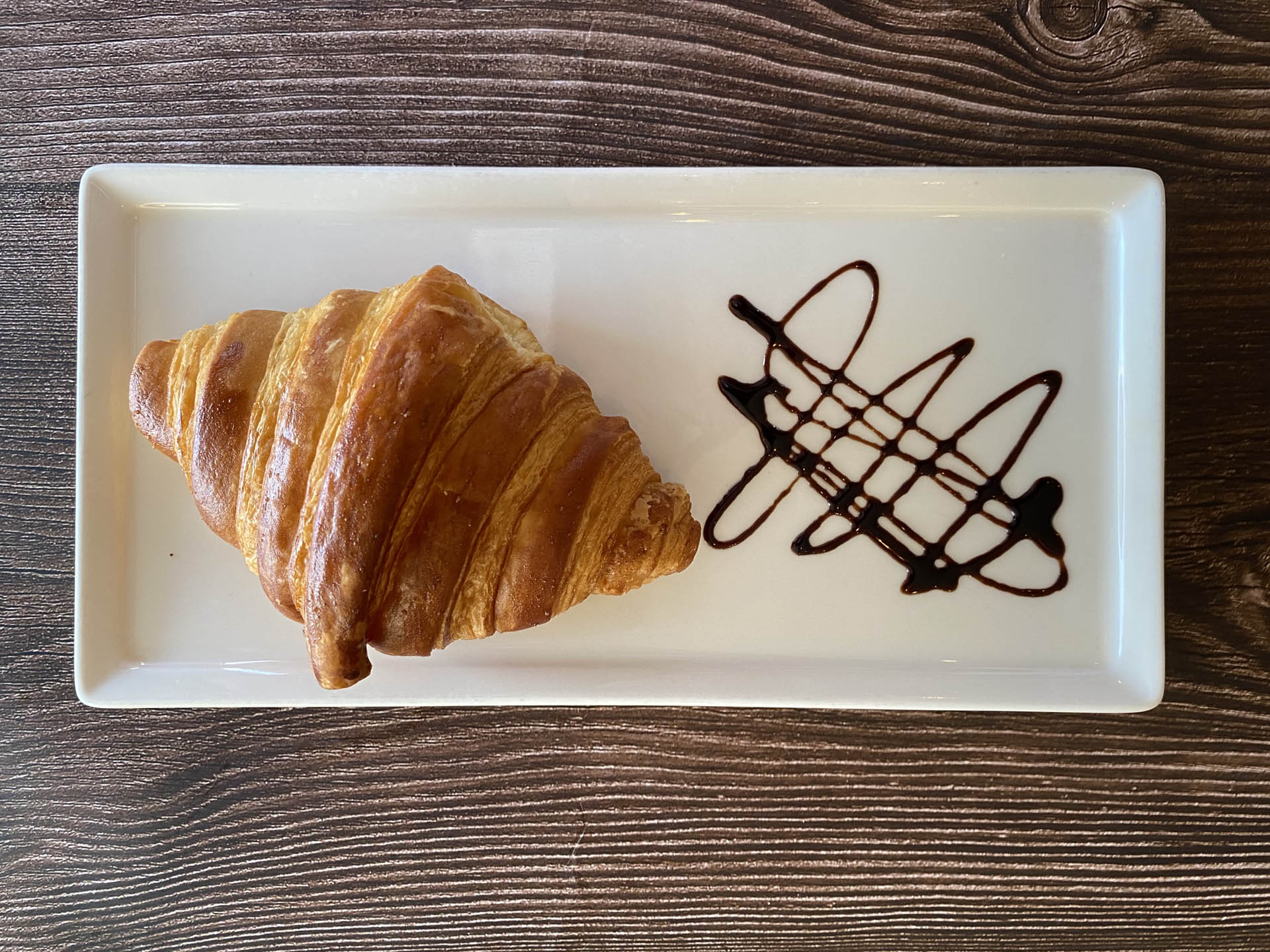 Disfruta cada bocado de este croissant relleno de chocolate.