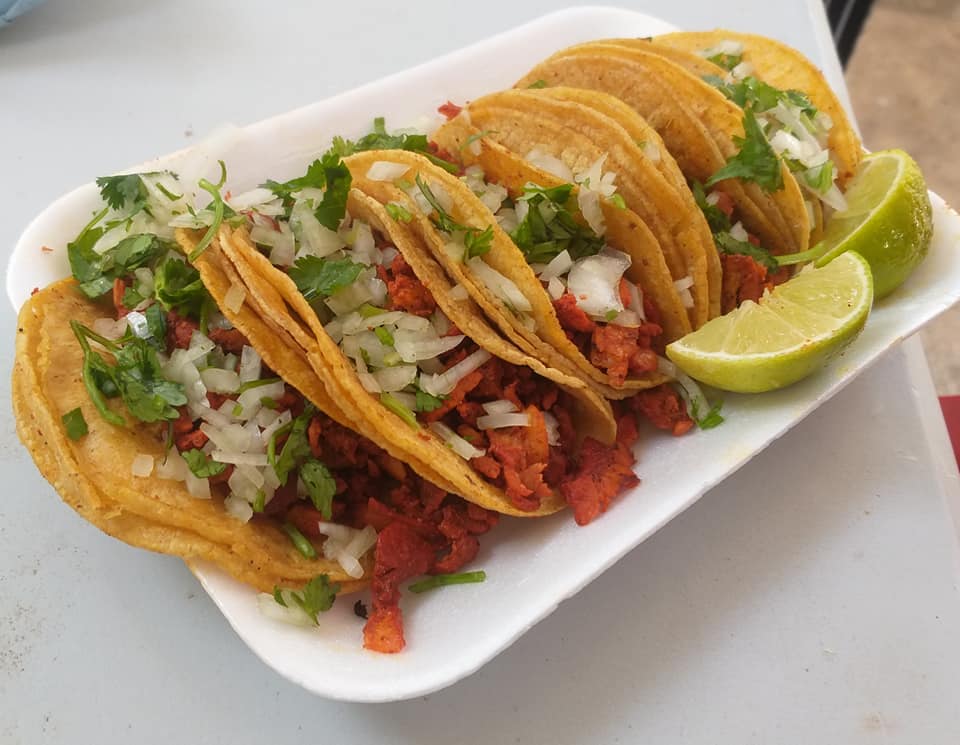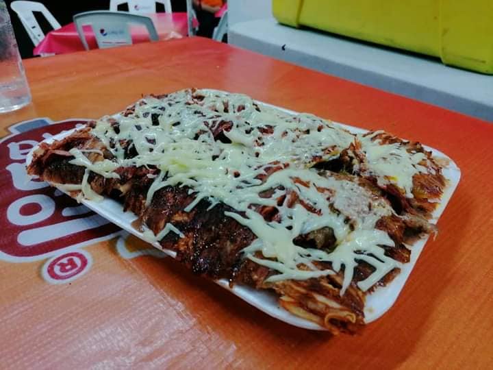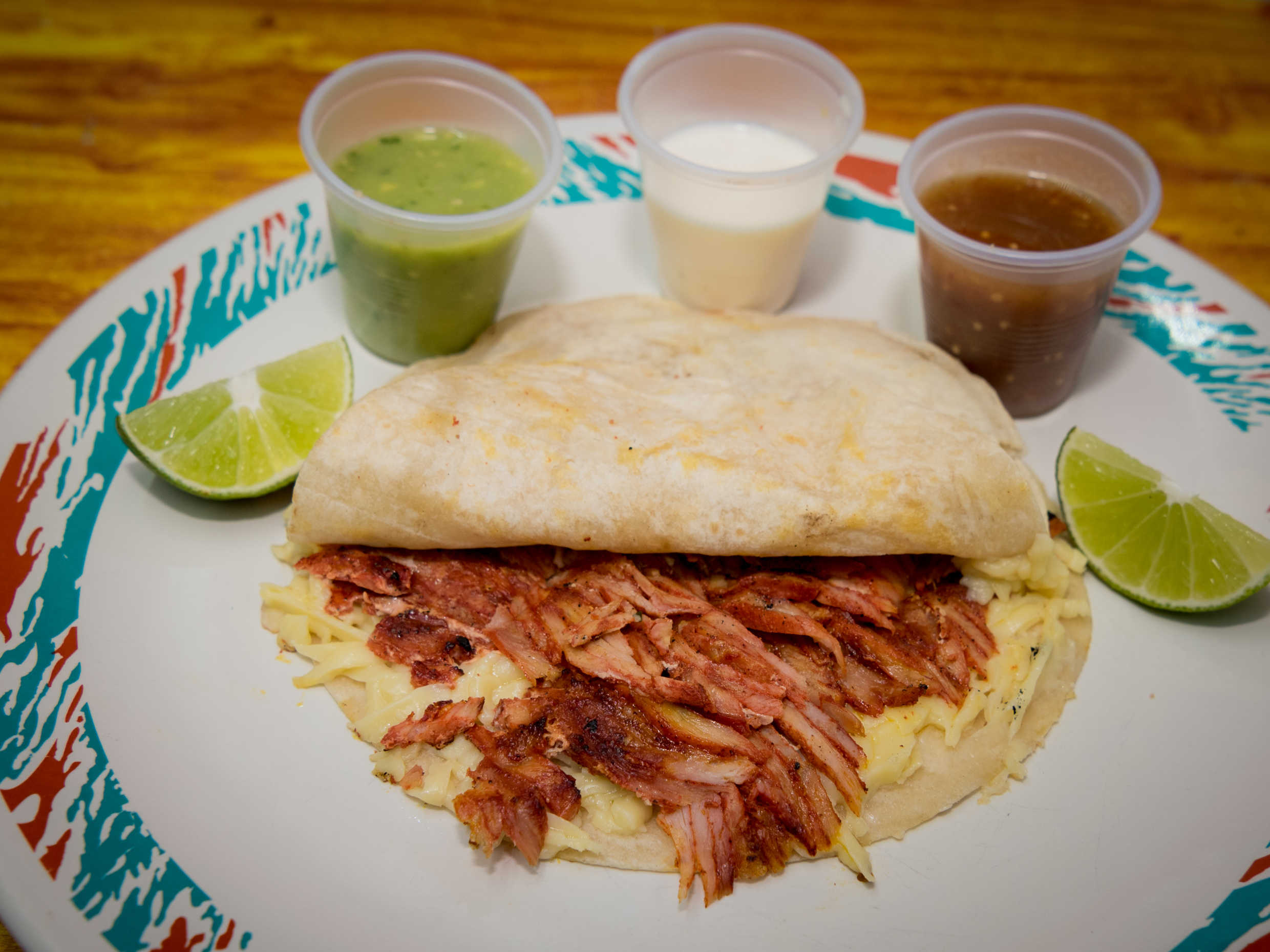 Deliciosas tortillas de harina arriba y abajo con pastor y queso.