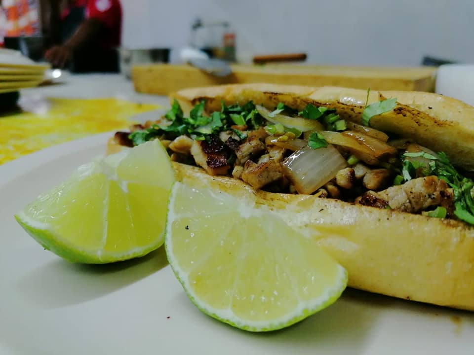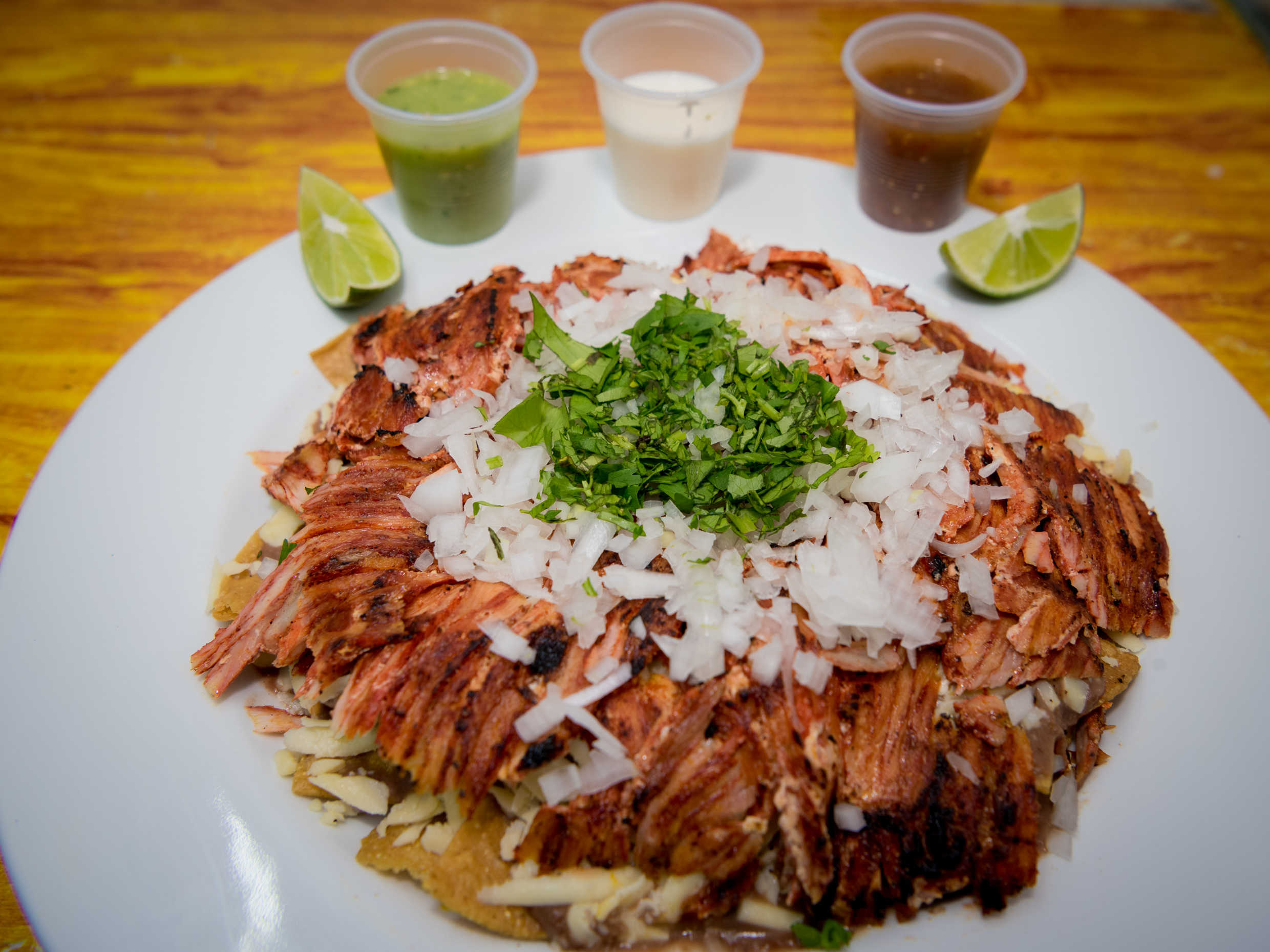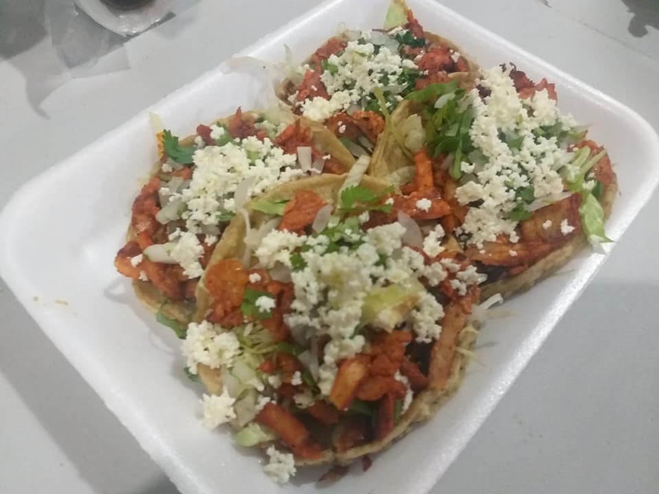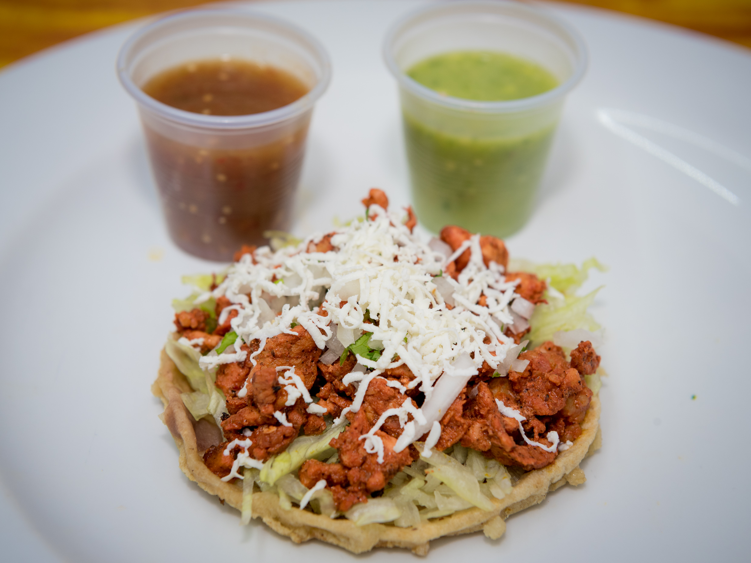 Sope con delicioso frijol, pastor, lechuga, queso fresco y cebolla.