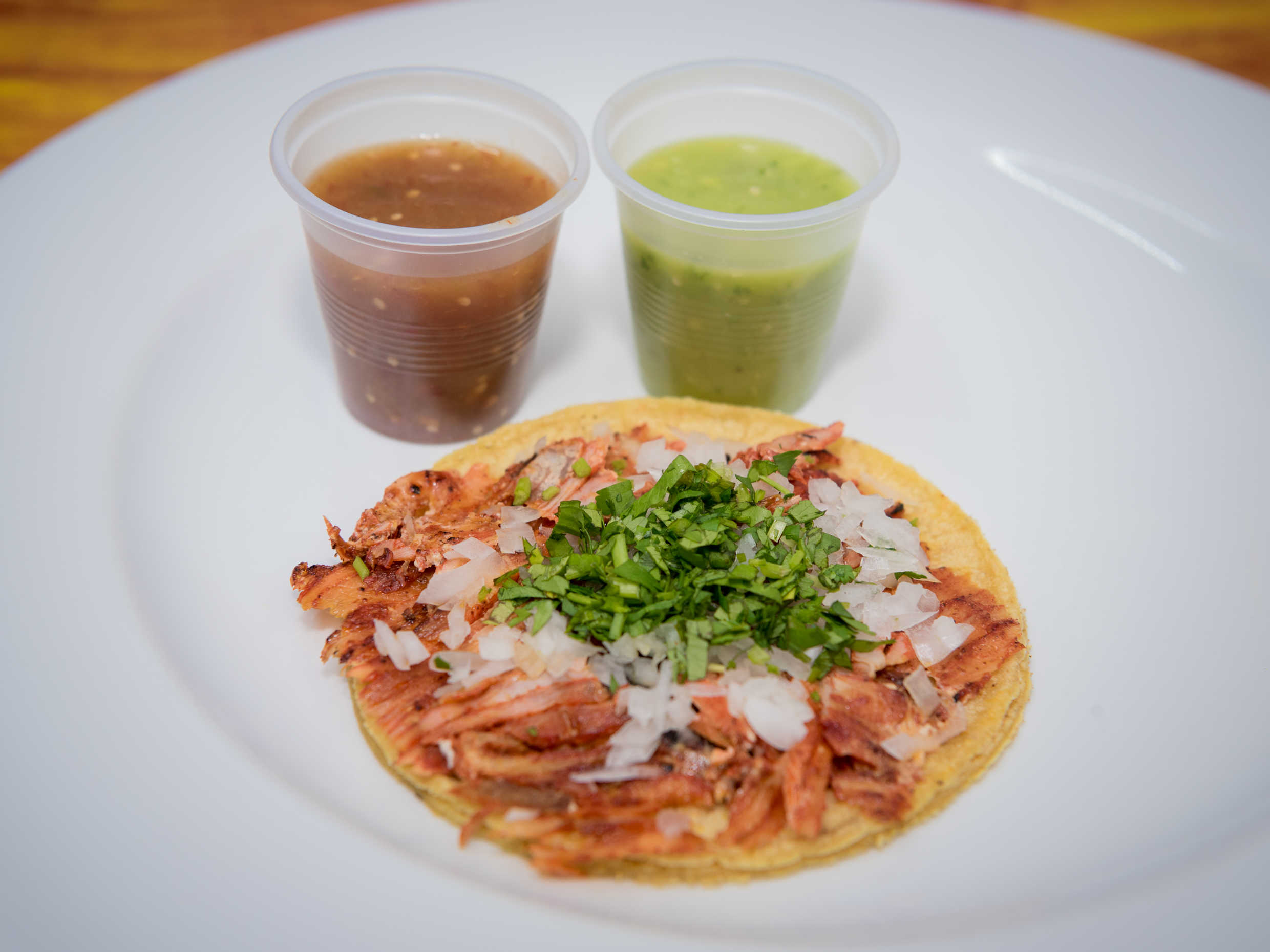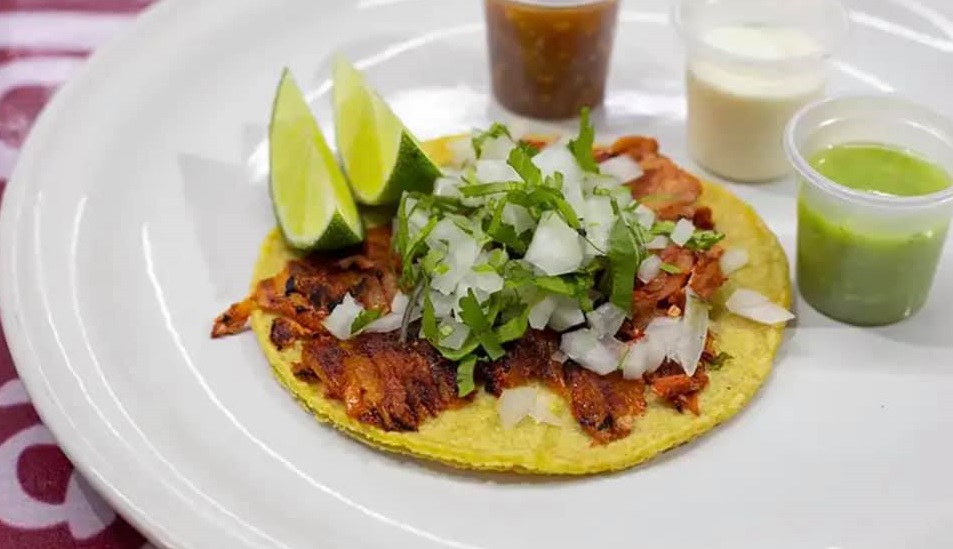 Incluye salsa roja, salsa verde, crema de ajo, limones, cebolla, cilantro