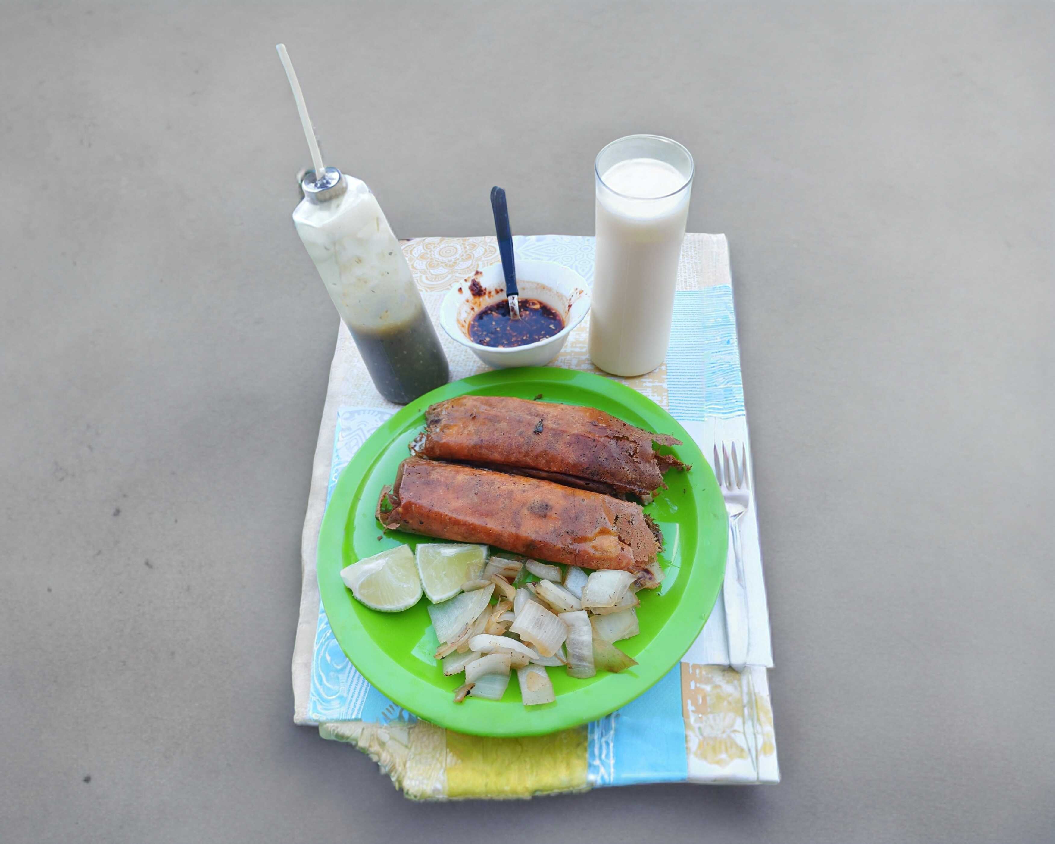 4 Tacos Maiz Asada Cn Queso + Agua de Sabor 500 Ml