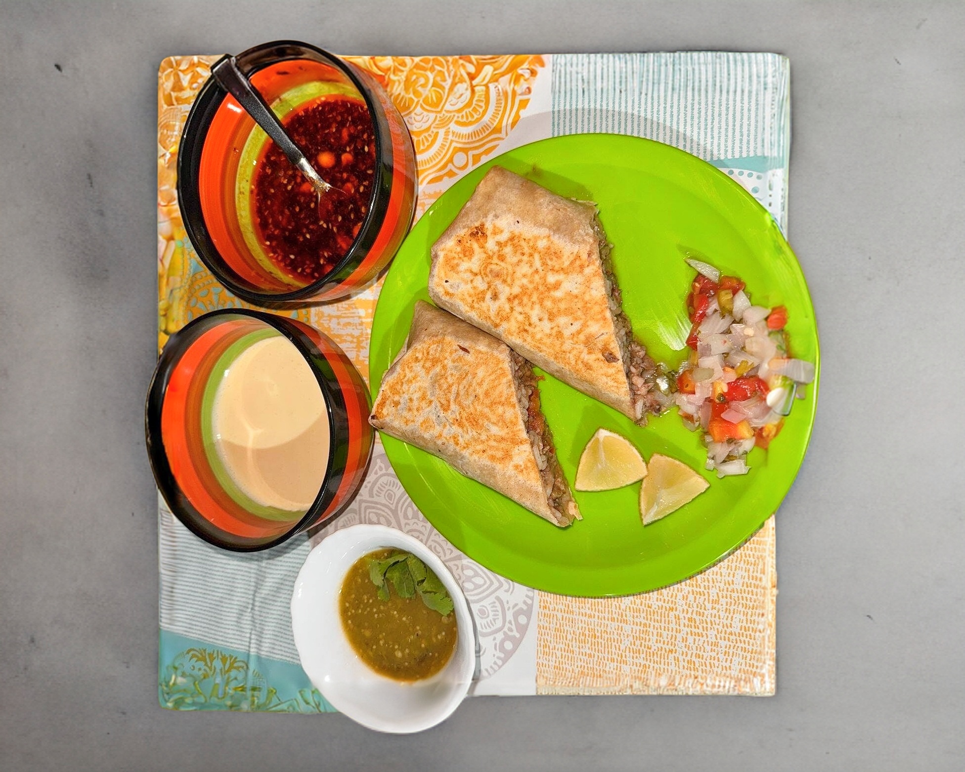 Disfruta de nuestra Quesadilla de Carne de Res, una deliciosa mezcla de queso derretido y carne de res jugosa, sazonada a la perfección. Todo esto, envuelto en una tortilla de harina dorada y crujiente.