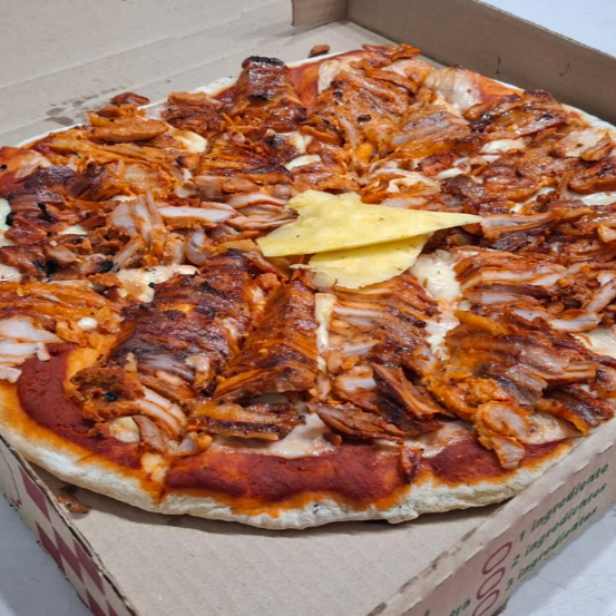 Mezcla de carne al pastor con pimientos, cebolla y queso.