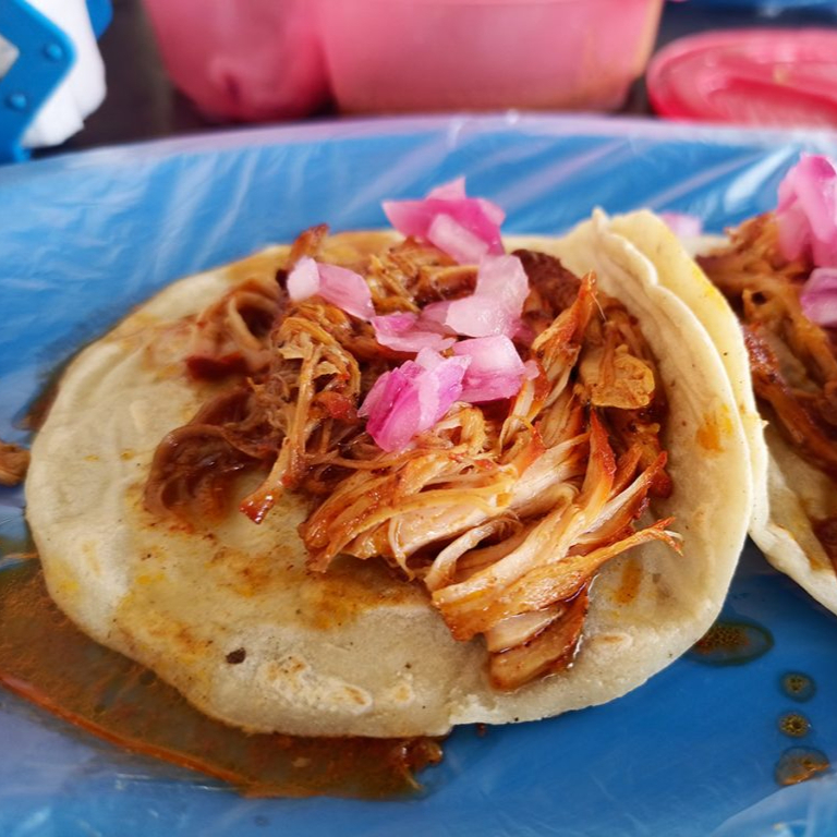 Delicioso taco preparado con carne al pastor en tortilla de maíz
