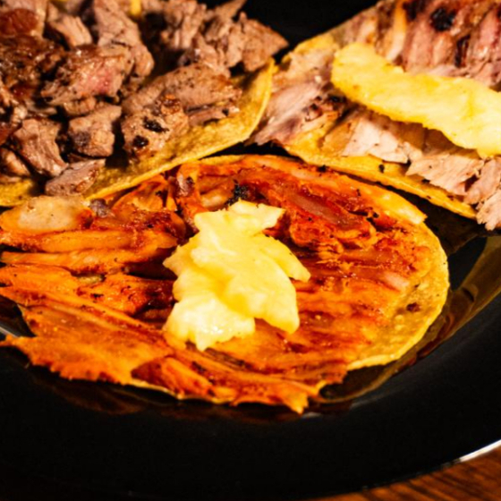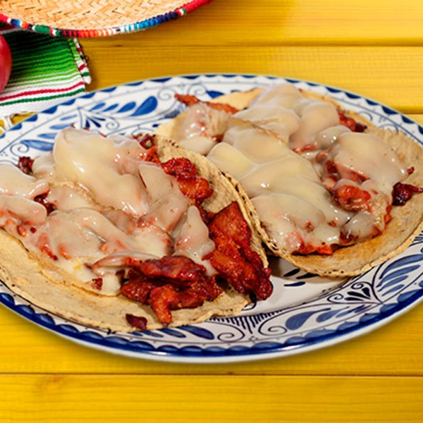 Suave arrachera con queso fundido, servida en tortilla de maíz o harina.