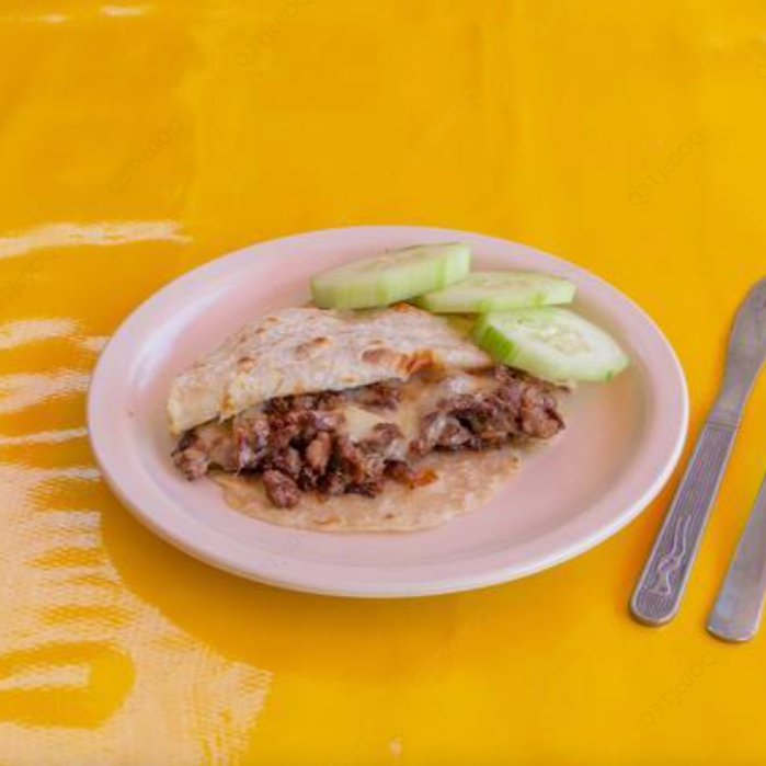 Lleva queso oaxaca derretido, puedes acompañarlo con guiso o cualquier carne.