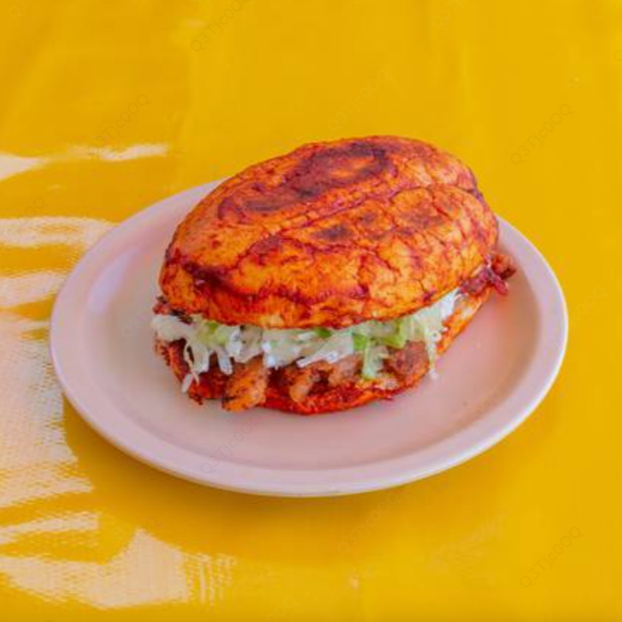 Telera bañada en salsa de guajillo no pica, con papa, chorizo, alguna carne o guiso de su elección acompañado de lechuga, queso, crema y salsa.
