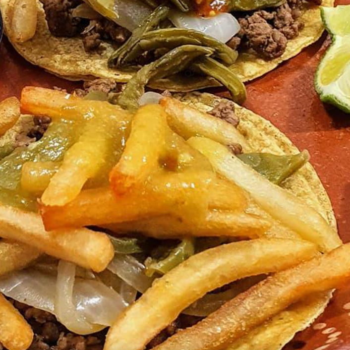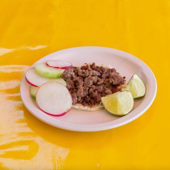 Tortilla taquera de maíz o harina con carne de su elección acompañados con cebolla, cilantro y salsa. Los tacos de guiso van acompañados de lechuga, crema y queso.