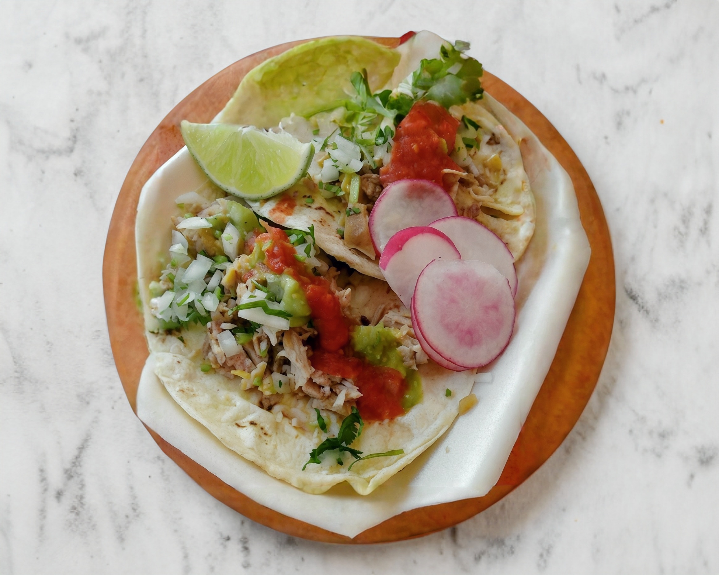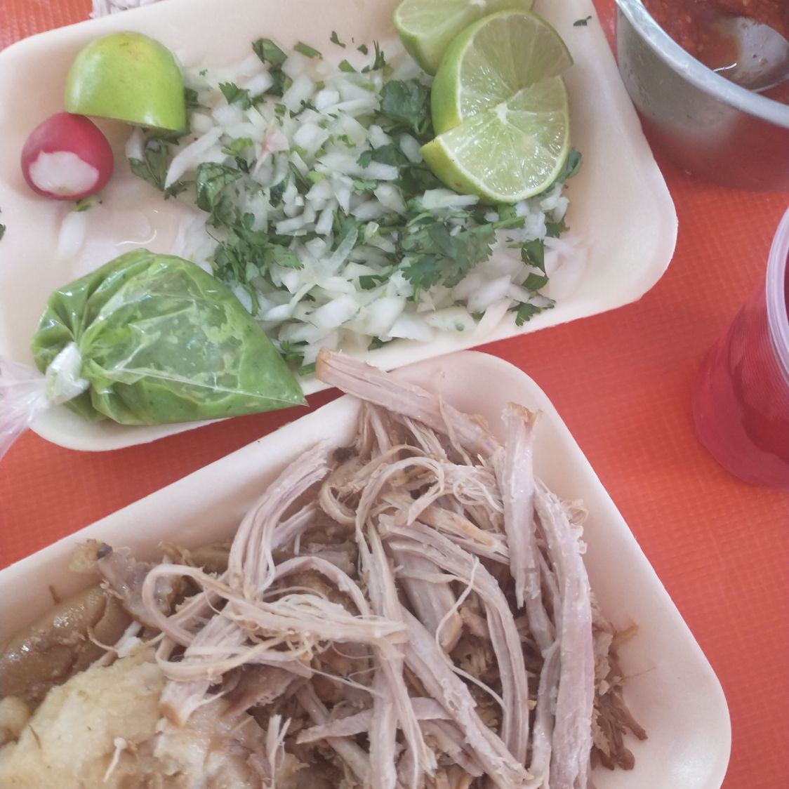 Carne surtida maciza, oreja, buche y oreja. Incluye tortillas y salsas.