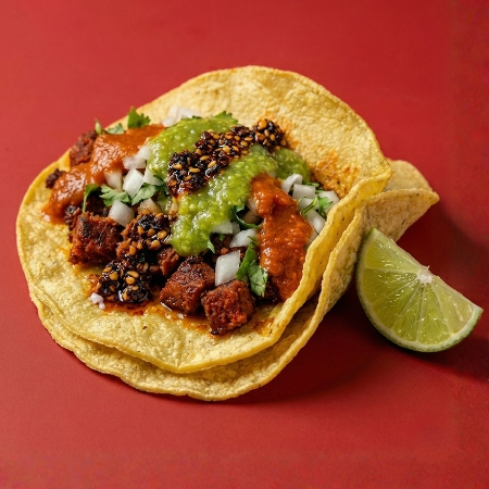 Taco Campechano, nuestro taco insignia, combinacion de Longaniza con Asada o Bistec y doble tortilla