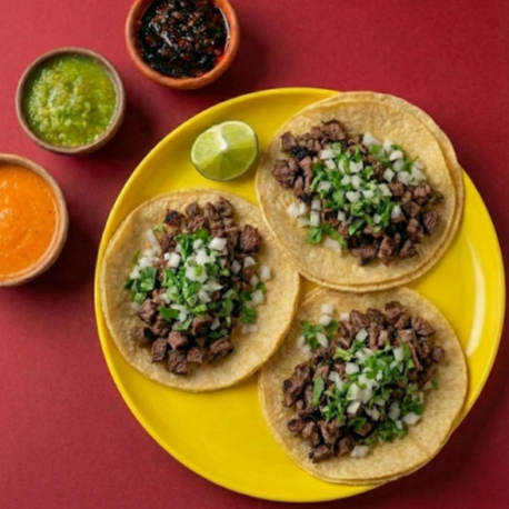 3 Tacos de Bistec, INCLUYE Salsas y verdura a elegir