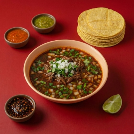 INCLUYE: 1/2 De Barbacoa de Res O Surtido De Cabeza De Res, 1/2 LT De Consomé, Tortillas, Salsas (Verde, Roja y Macha), Limon, Cebolla y Cilantro
