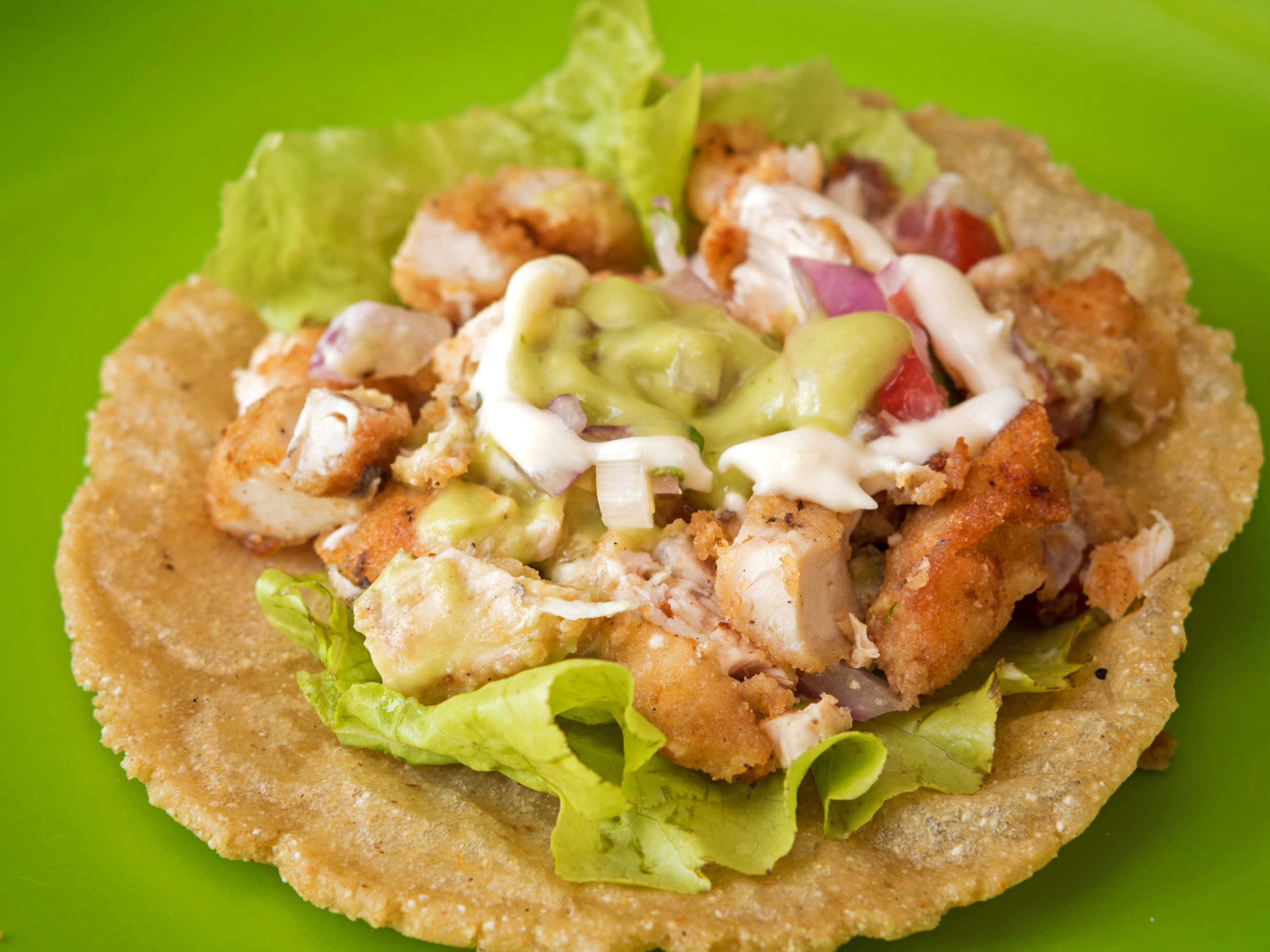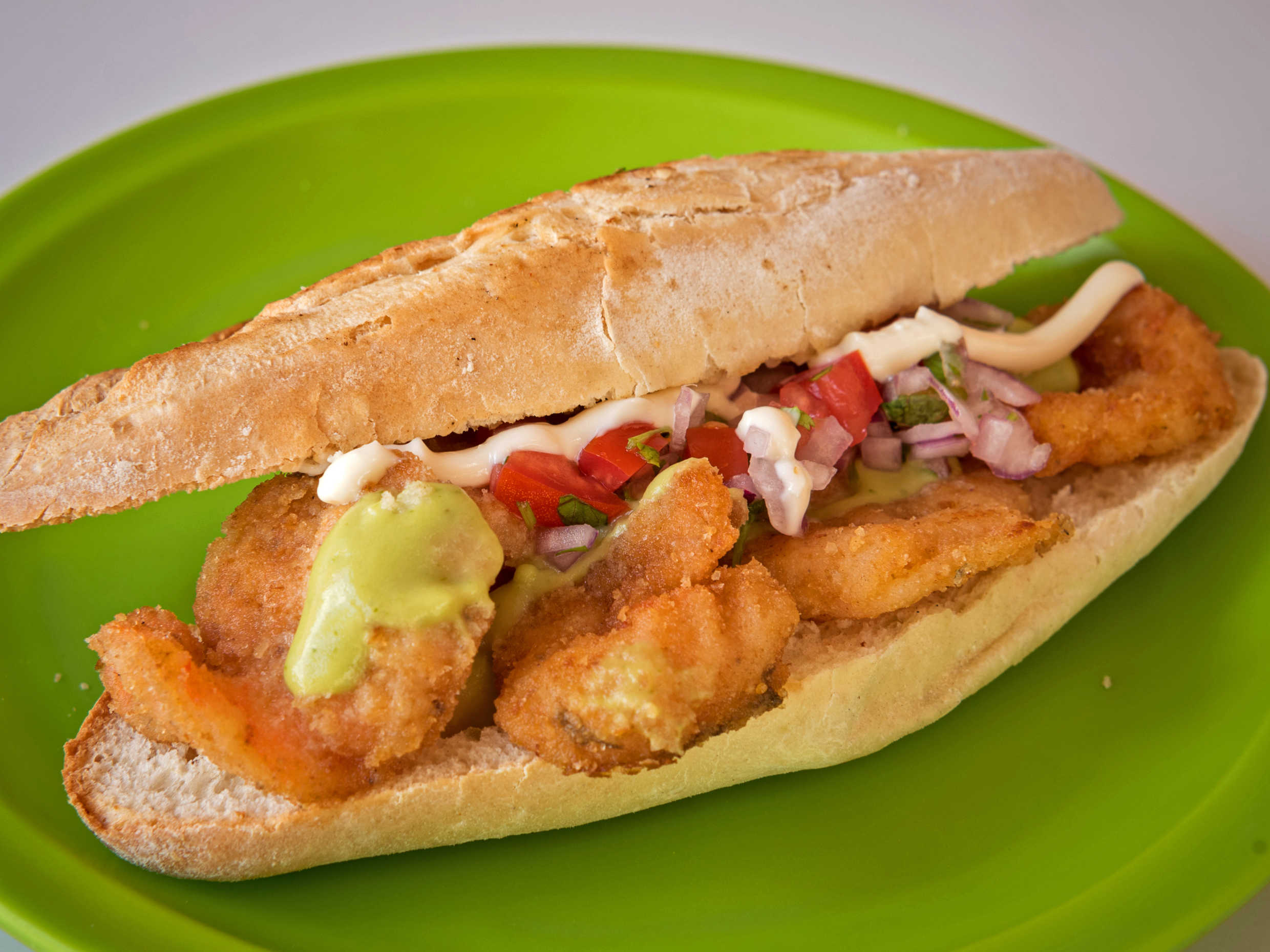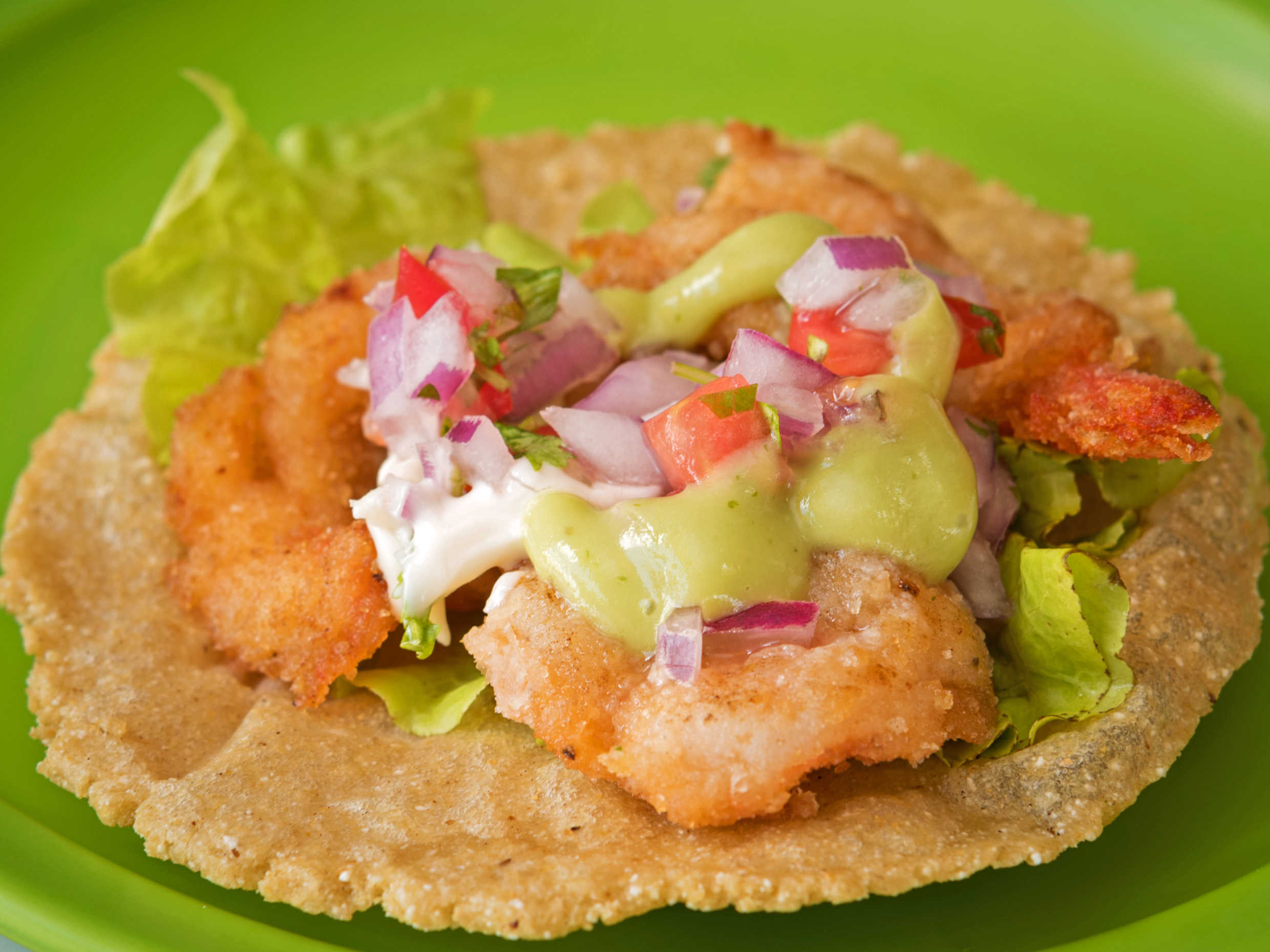 Camarón empanizado, Guacamole, Pico De Gallo, Mayonesa y Lechuga