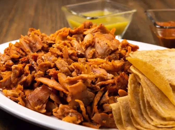 Tortilla burrera, frijol, Carnitas Michoacanas, queso acompañado de lechuga