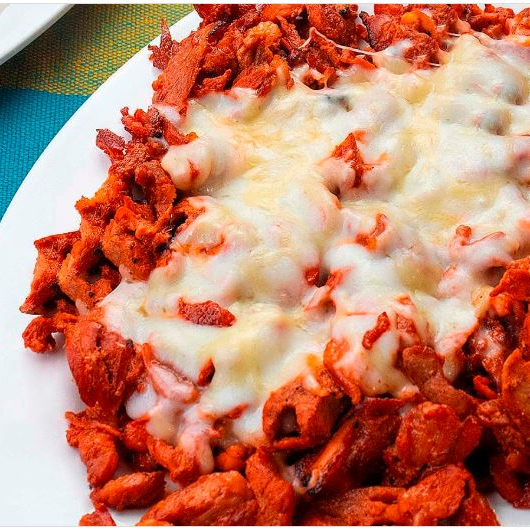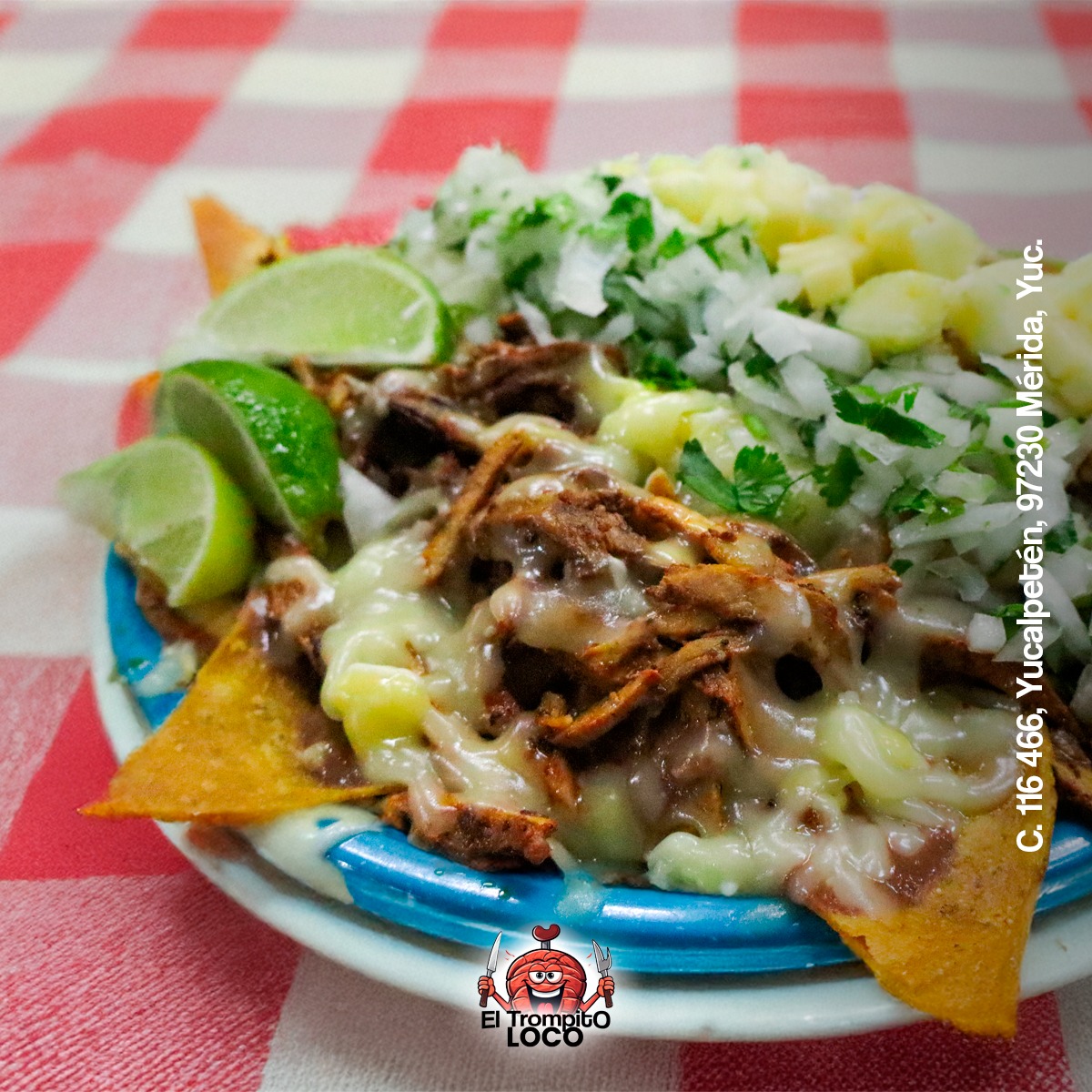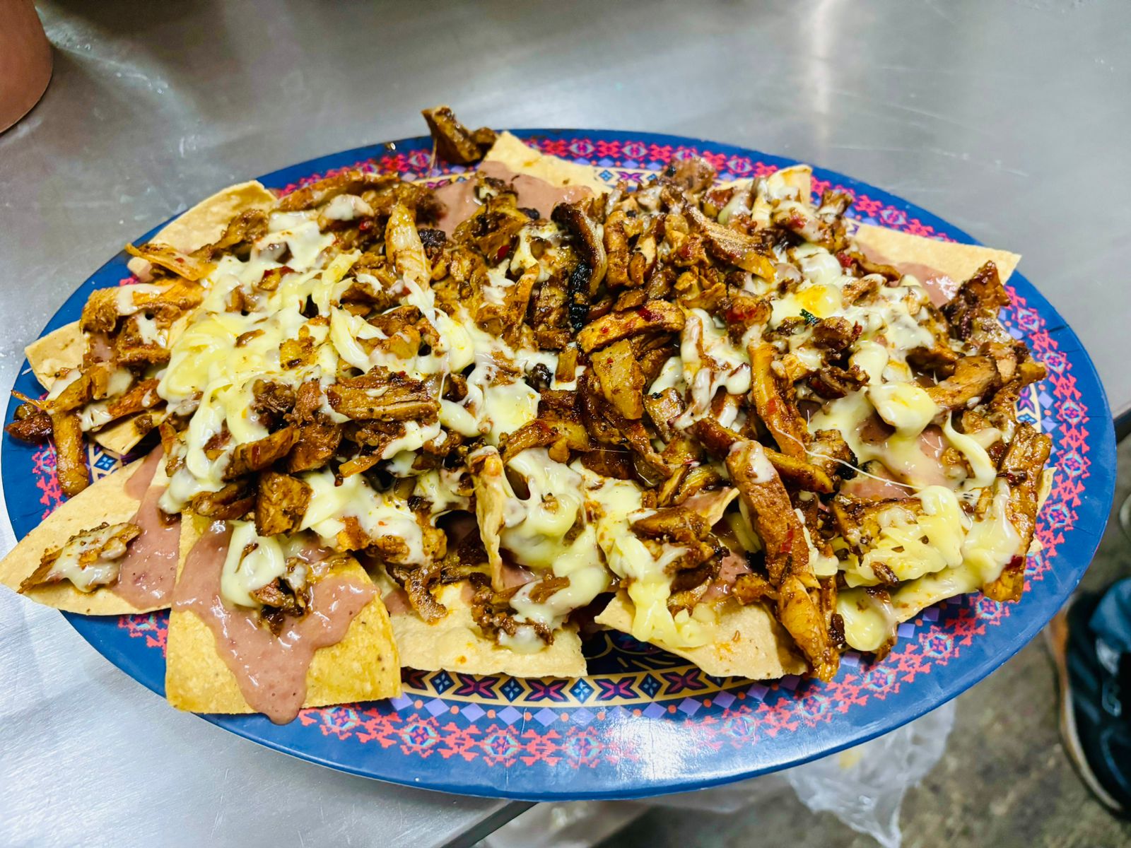 Totopos bañados con frijol ,queso y carnitas michoacanas