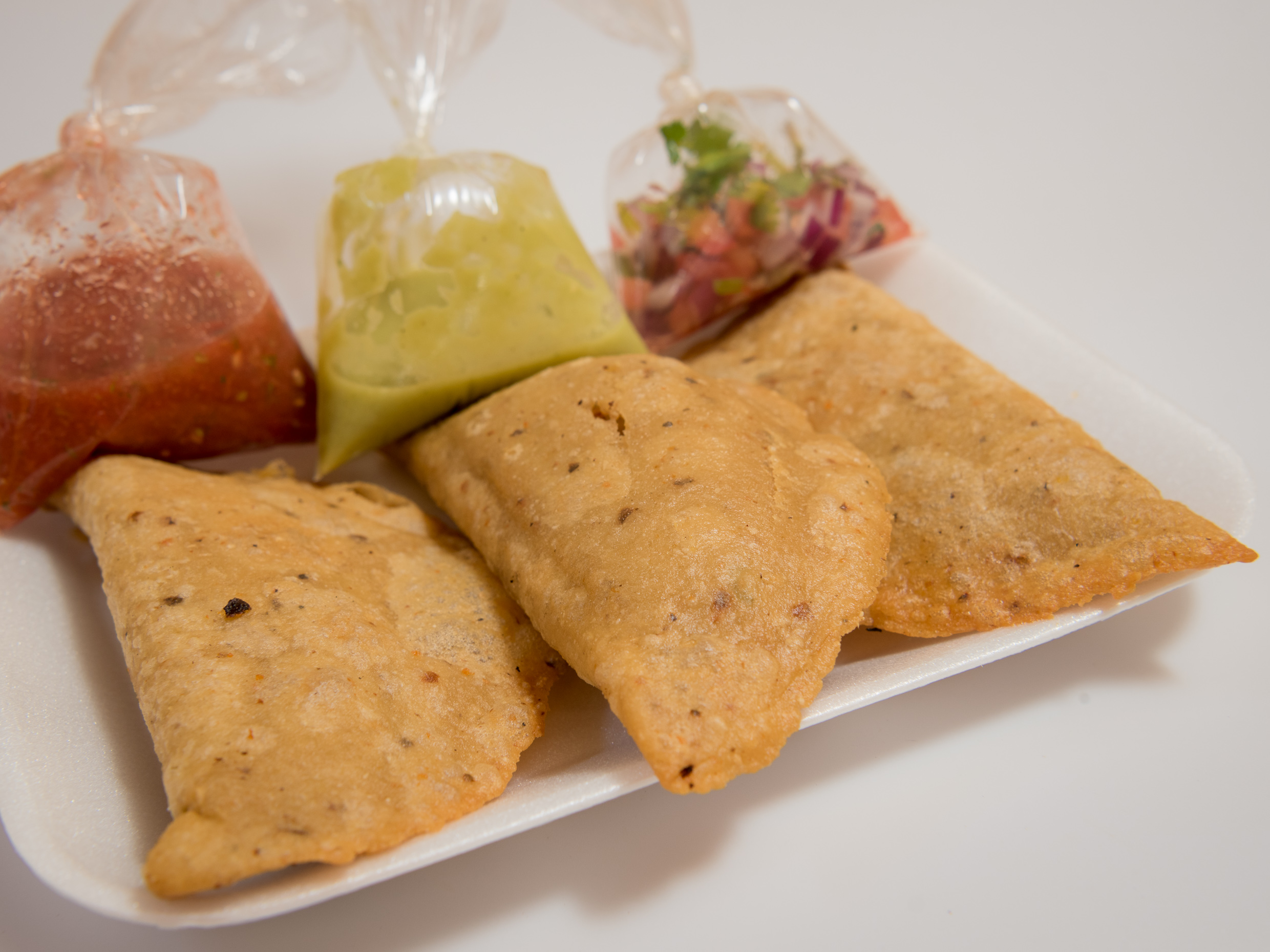 1 Pieza de masa frita rellena de asado, empanizado o molida con salsa repollo y picante.