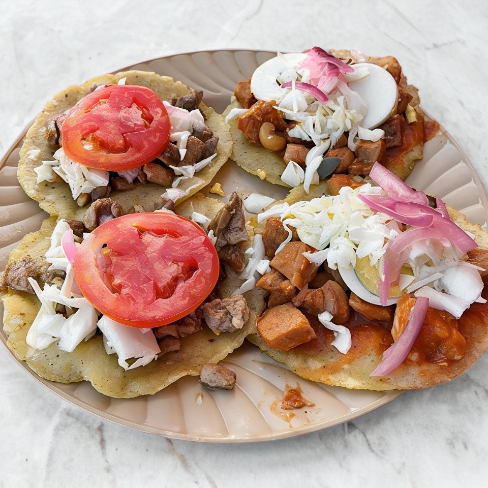 Puede ser preparado de carne asada, empanizado, molida o pollo, lleva media crema y salsa.
