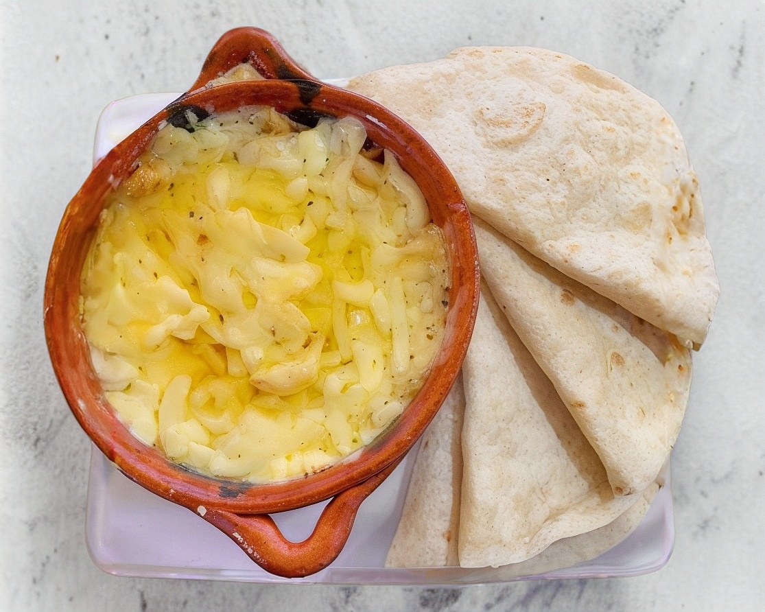 Queso fundido c/chorizo.