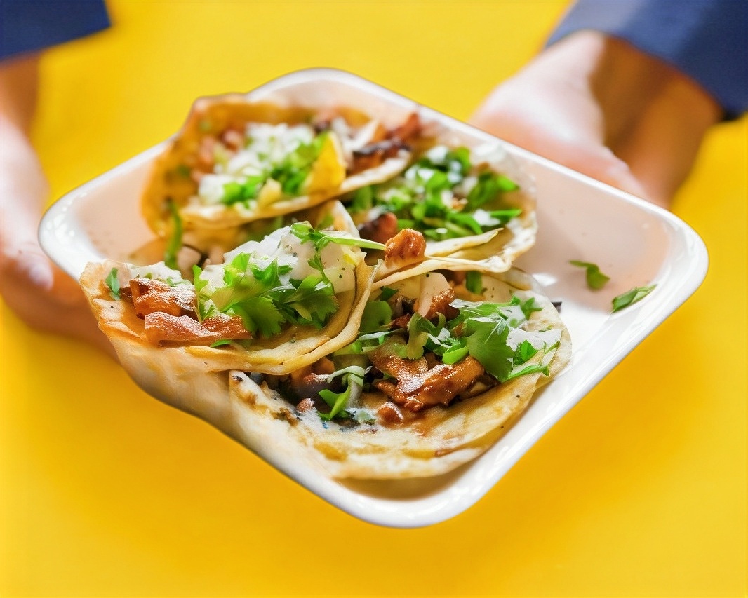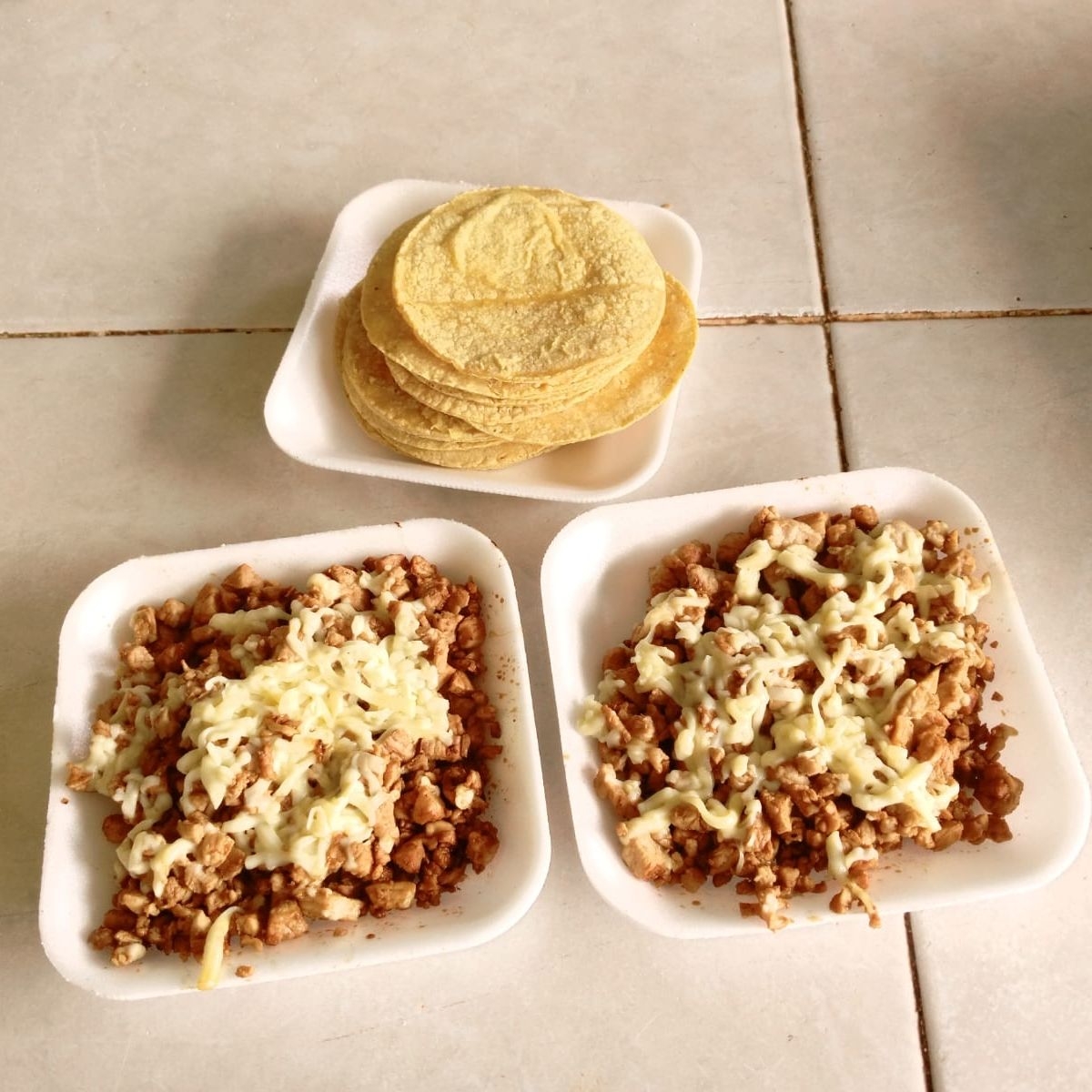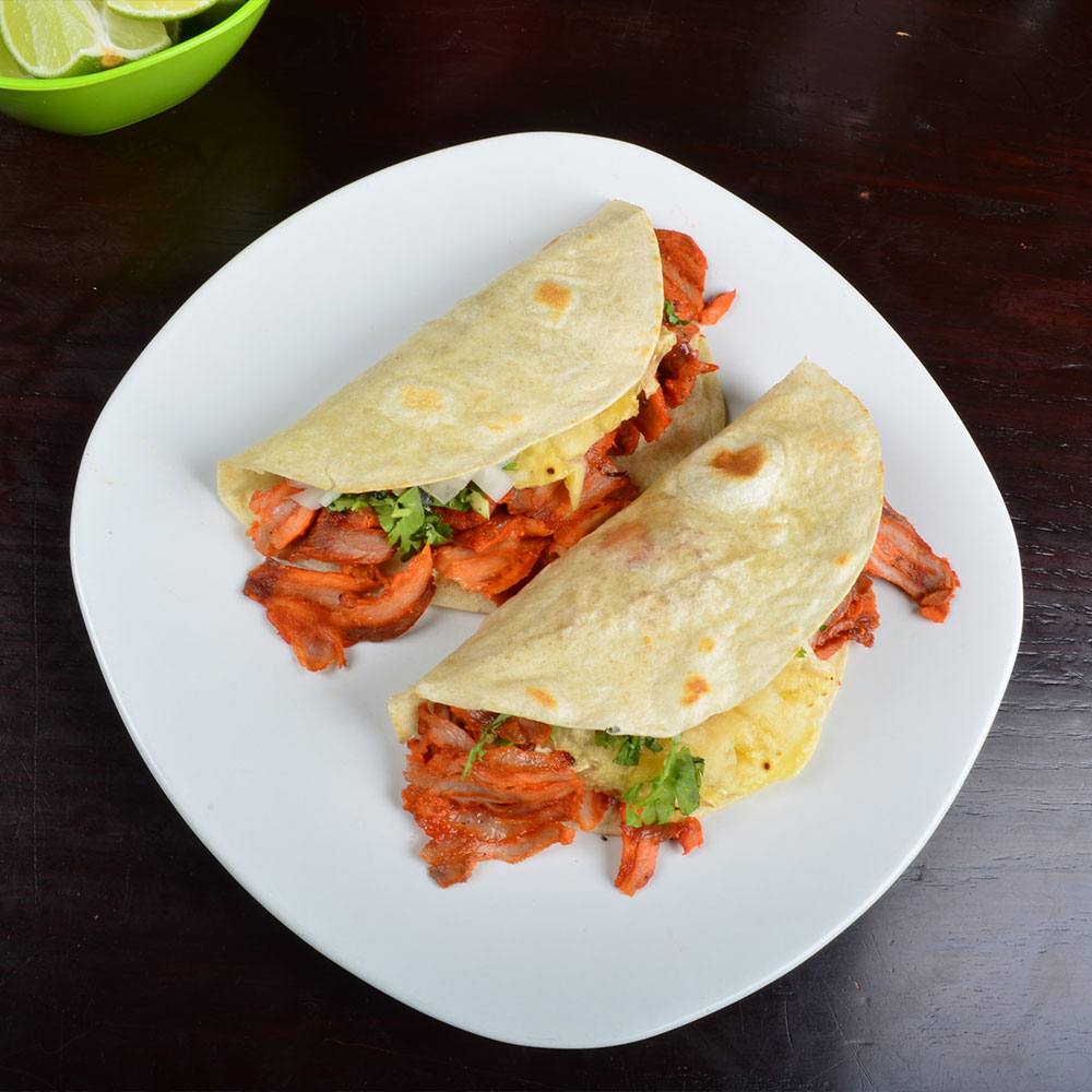 Tacos de chuleta de maiz acompañado de salsa , cebolla,con silantro