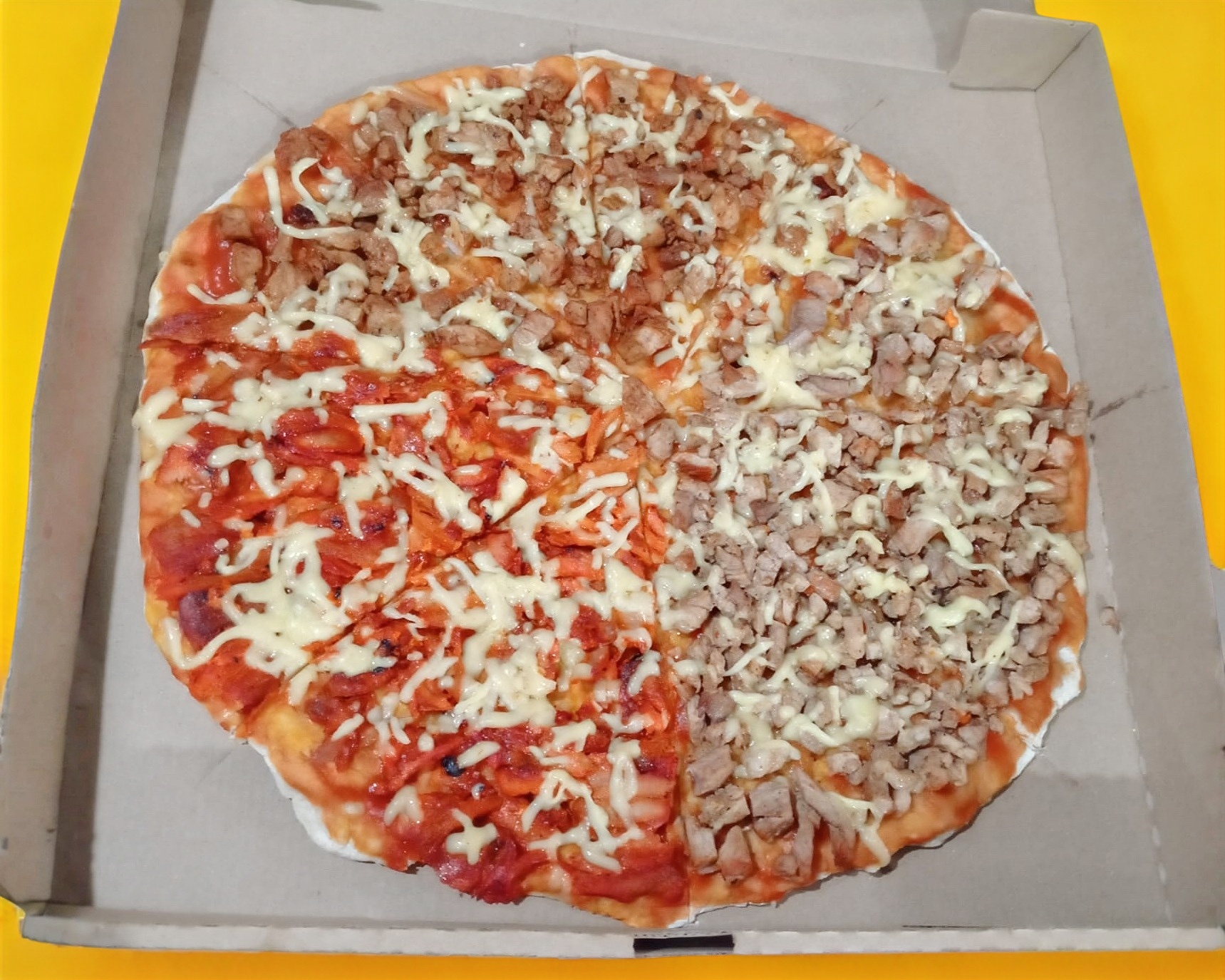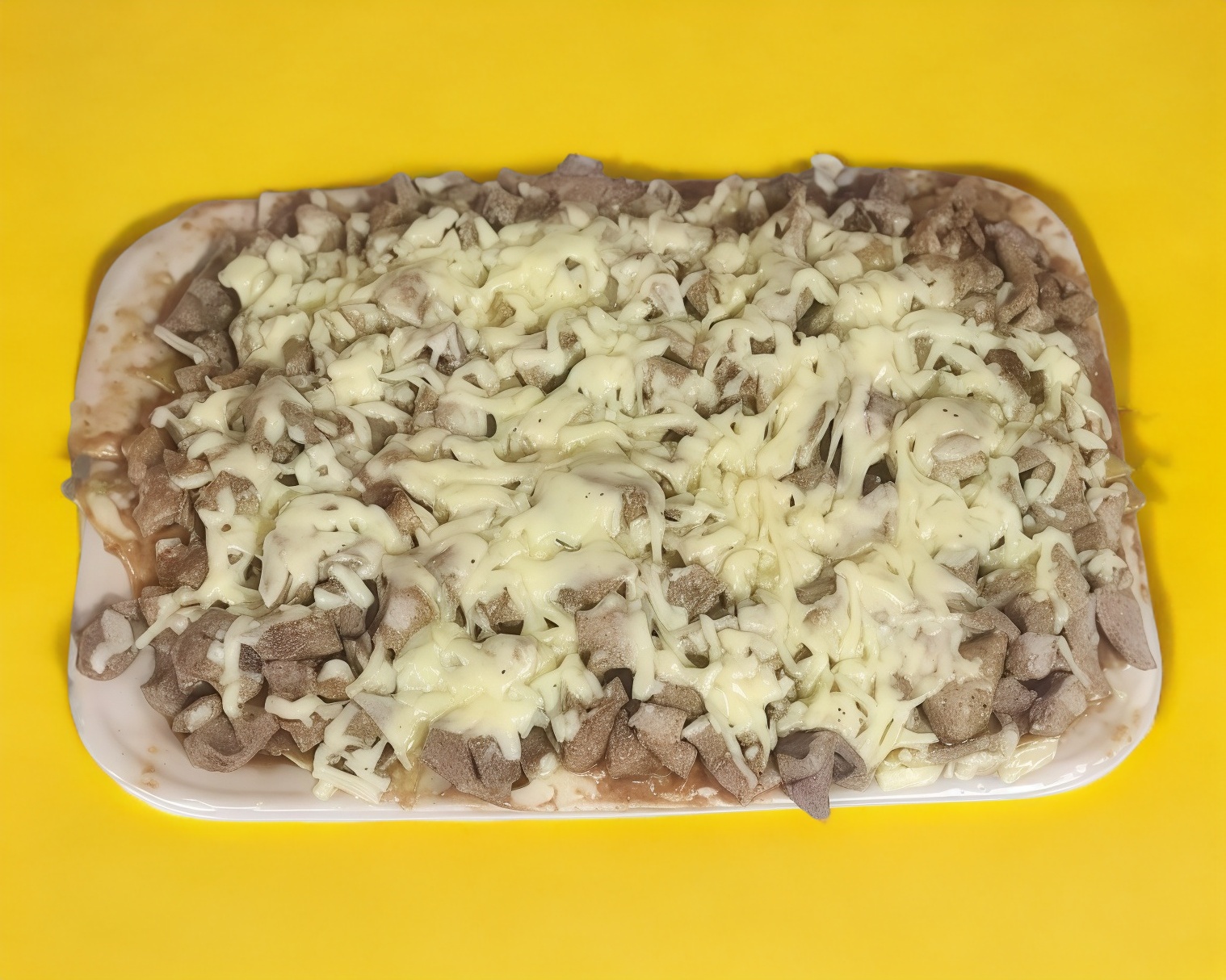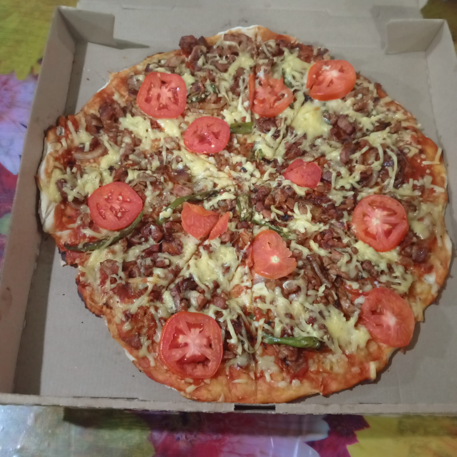 Cebolla, morrón, chuleta, pastor, tocino, champiñón y queso.