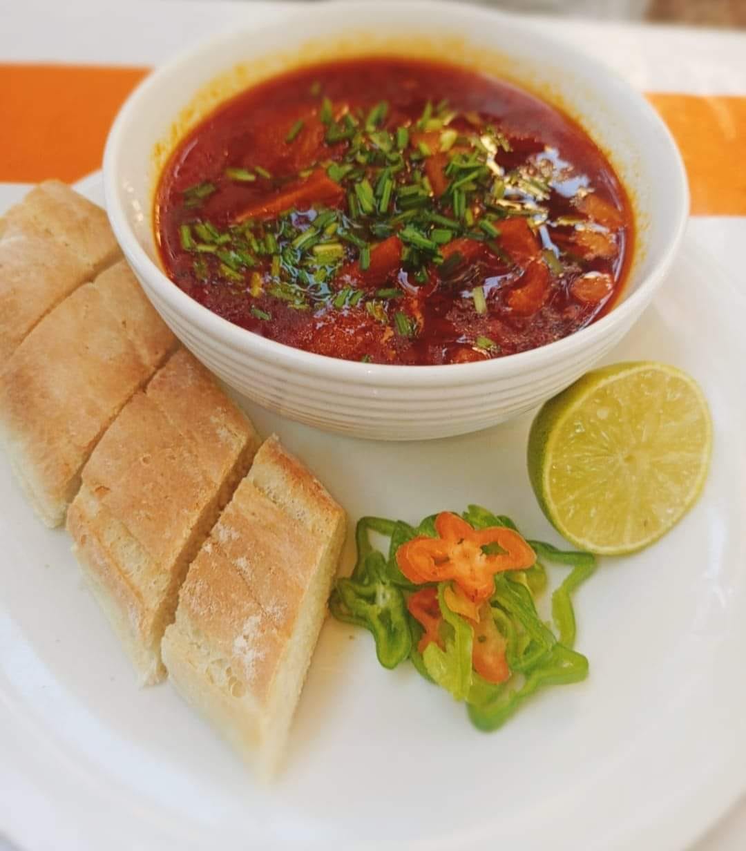 Carne de cerdo elaborada con achiote, naranja agria y especias envuelta en hoja de plátano. Cocida en horno a la leña se acompaña con cebolla curtida y chile habanero.