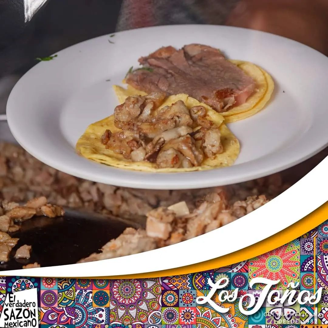 1 Porción de frijoles charros (tocino, chorizo, jamón, salchicha, chicharrón de cerdo) carne al pastor y queso.