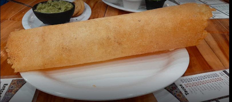 Tortilla de harina rellena de queso derretido y tripa.
