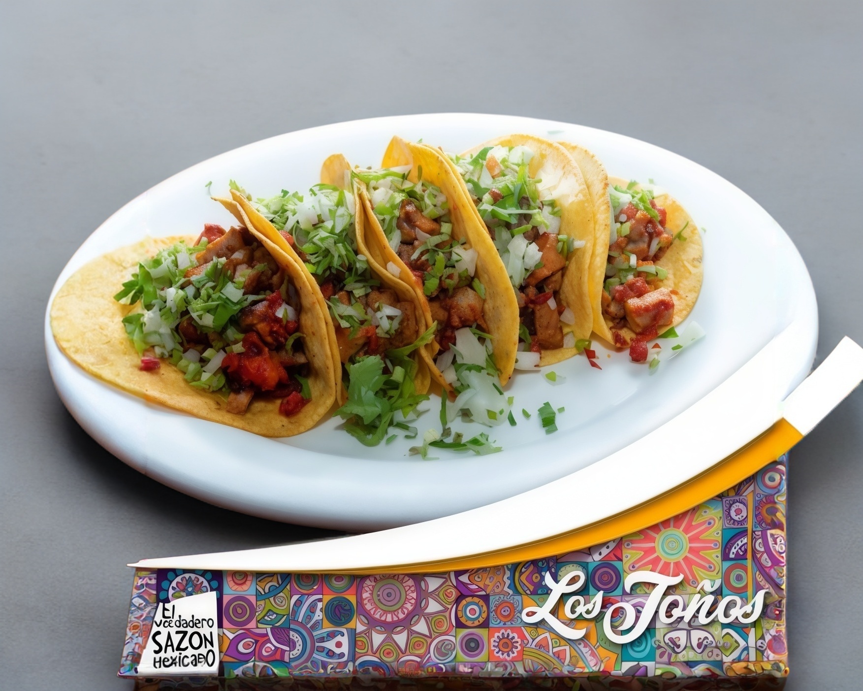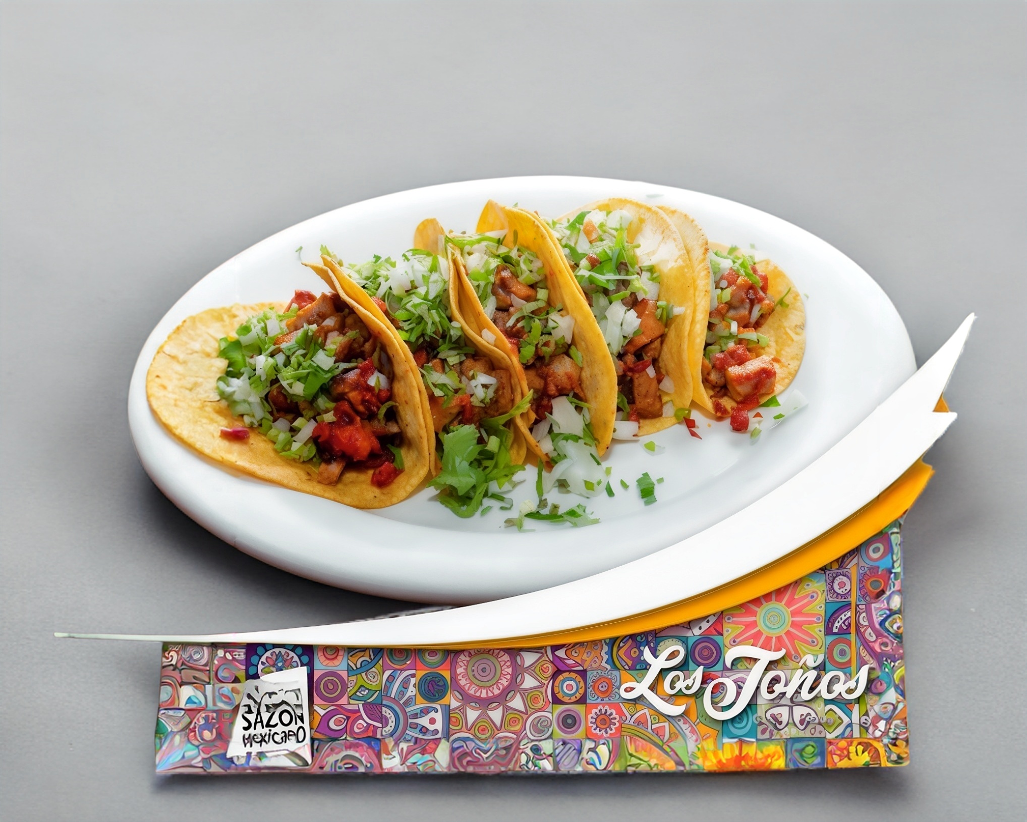 Tortilla de maíz campechano, cebolla, cilantro y picante.