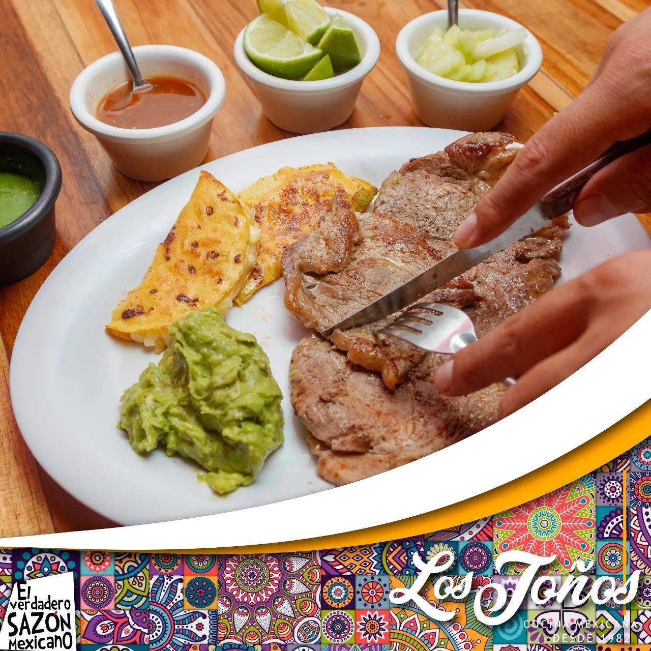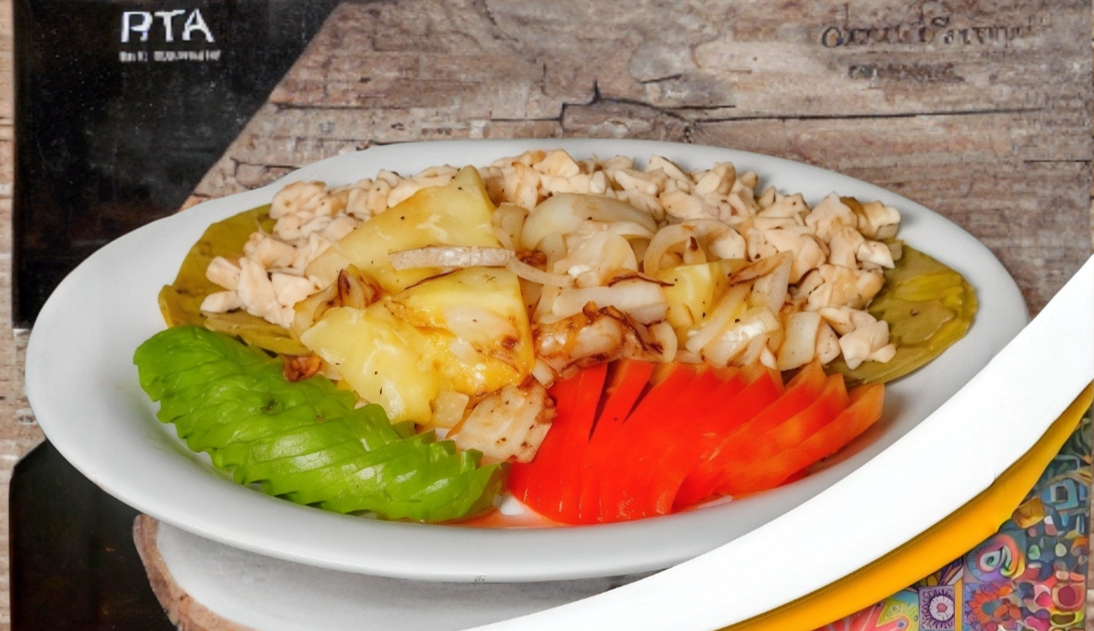 Chuleta, chorizo, morrón, nopal, cebolla, queso.