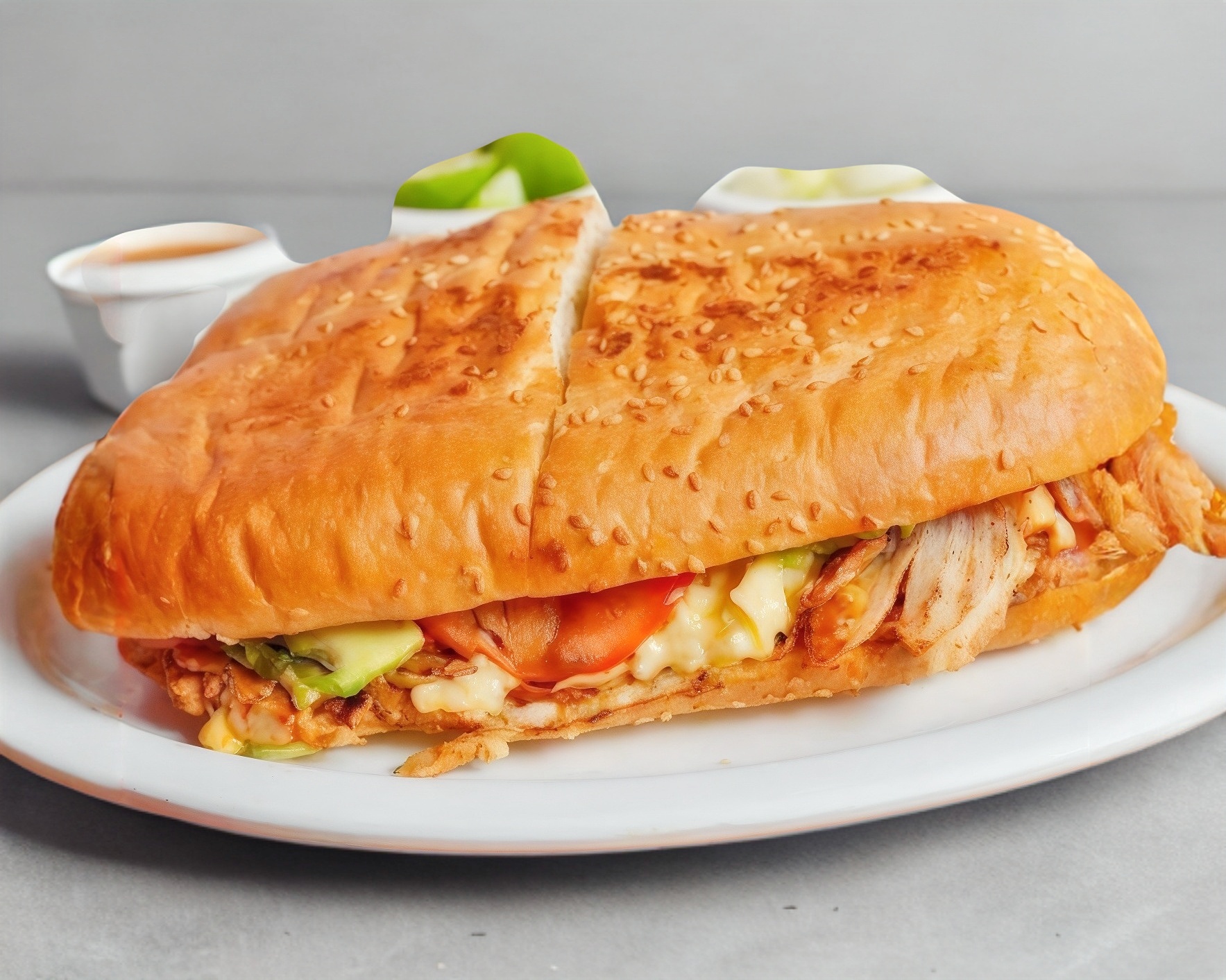 Mayonesa, cebolla, jitomate, picante, pollo y aguacate.