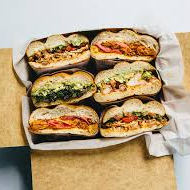 Lonche de pan artesanal relleno de carne al pastor, cebolla, cilantro y los ingredientes de la casa.