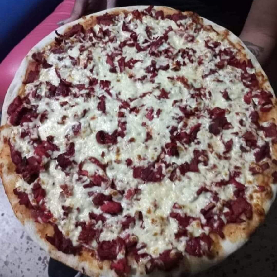 Pizza especial con carne al pastor, incluye pan de ajo y refresco de 1.35 L.