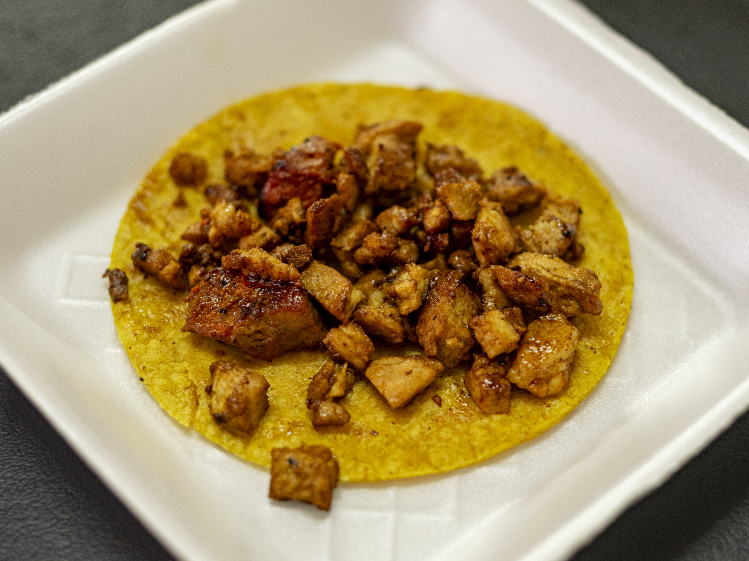 Taco campechano (bistec chorizo ) en tortilla de harina