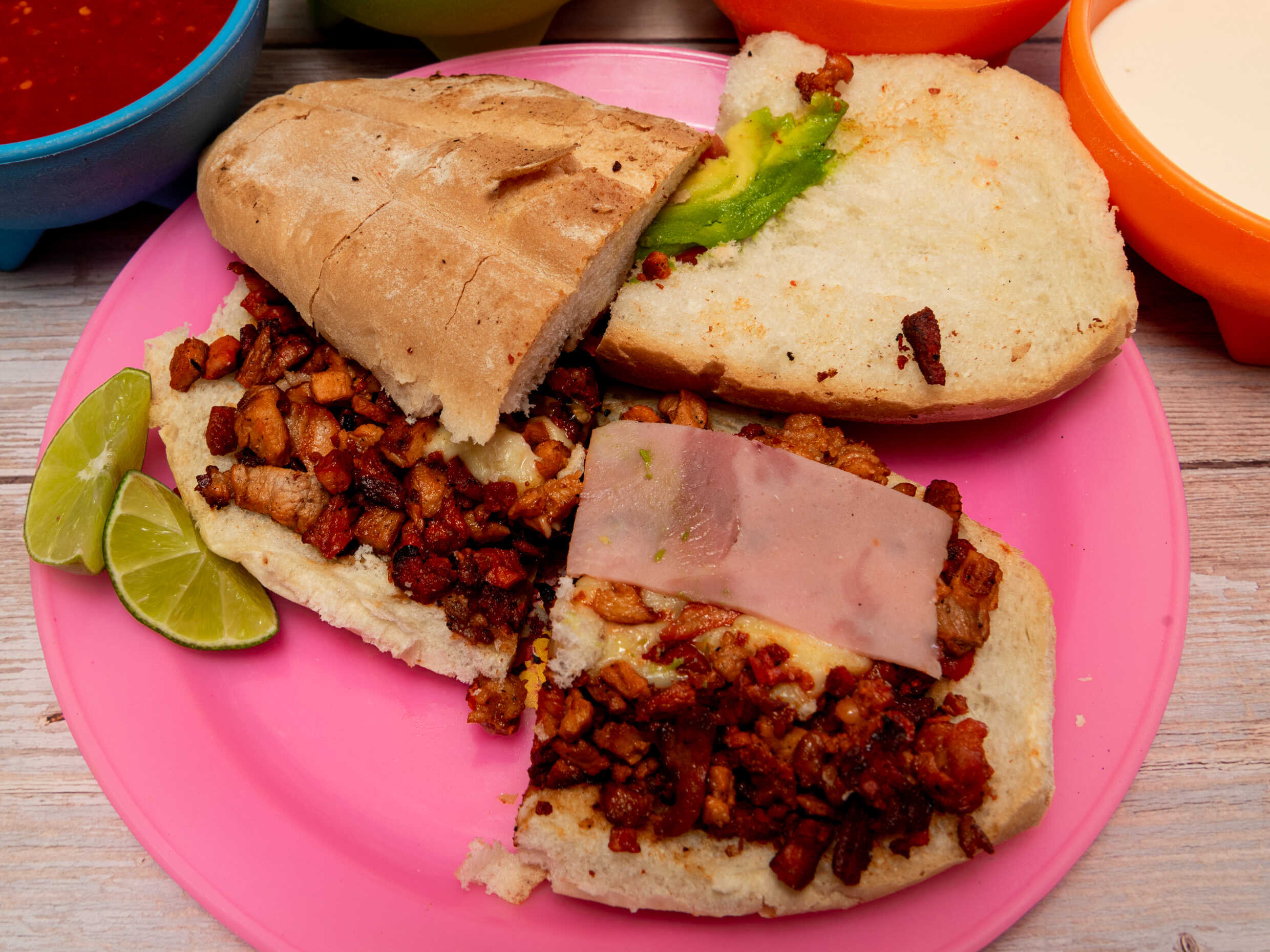 3 deliciosos tortas de pastor con queso por el precio de 2