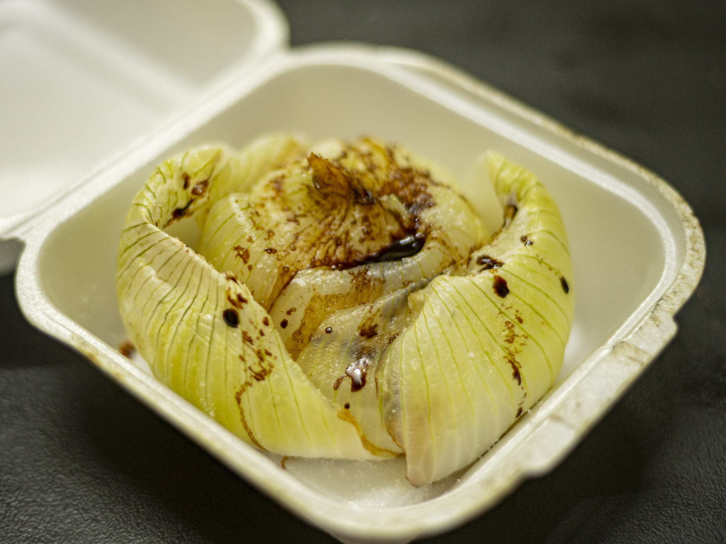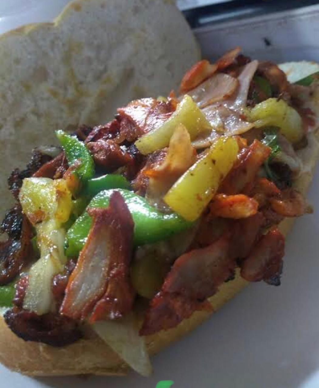 Cebolla morron chuleta pastor tocino y queso con aguacate