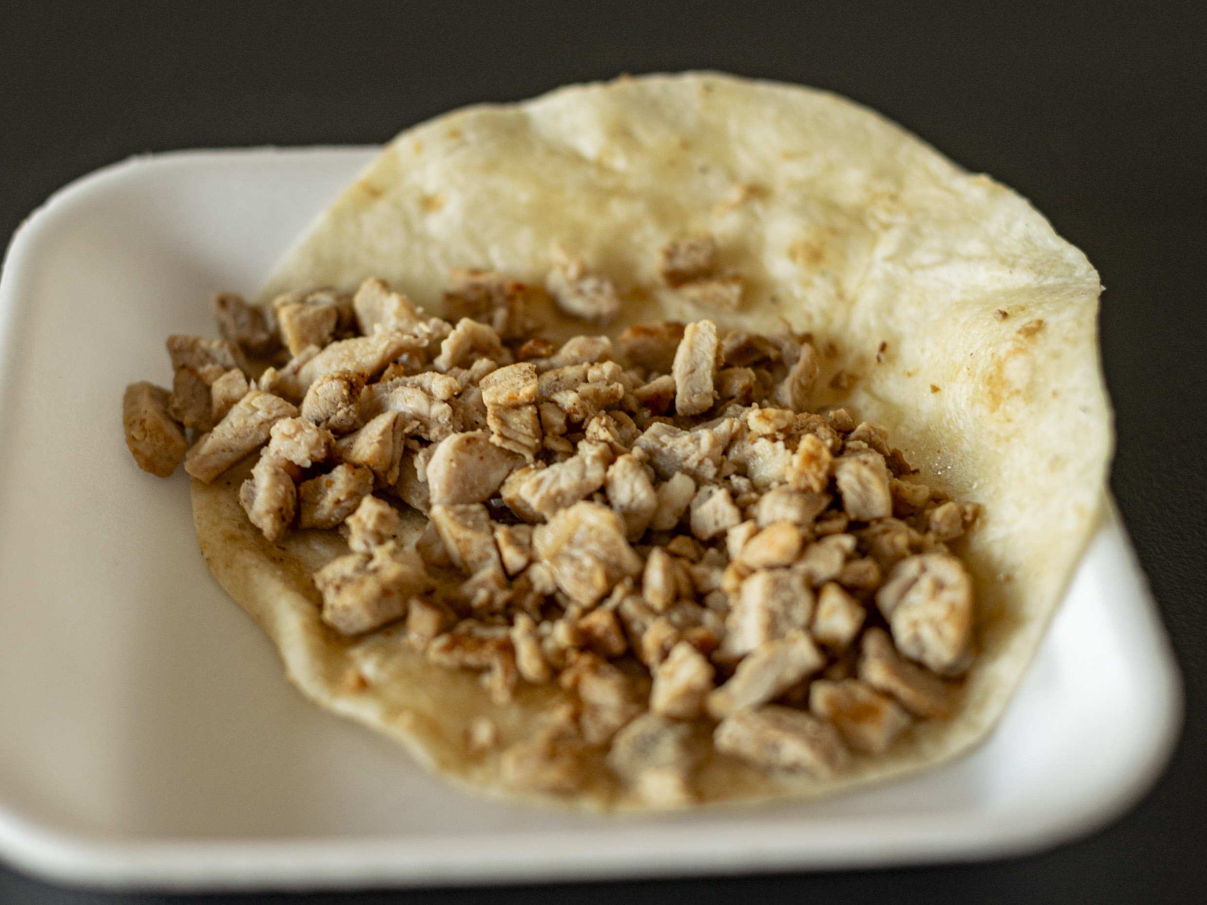 Carne de pechuga a la plancha, marinada con nuestra receta secreta, acompañado de salsas, limones, tortillas y crema de ajo.