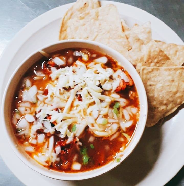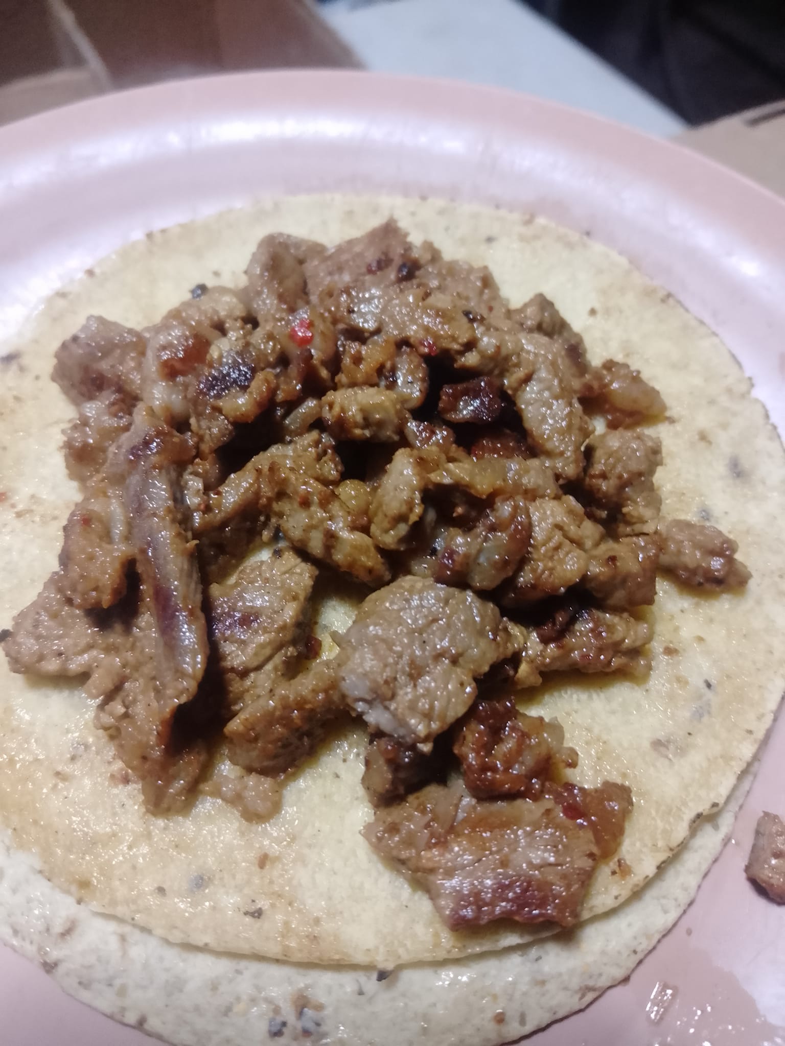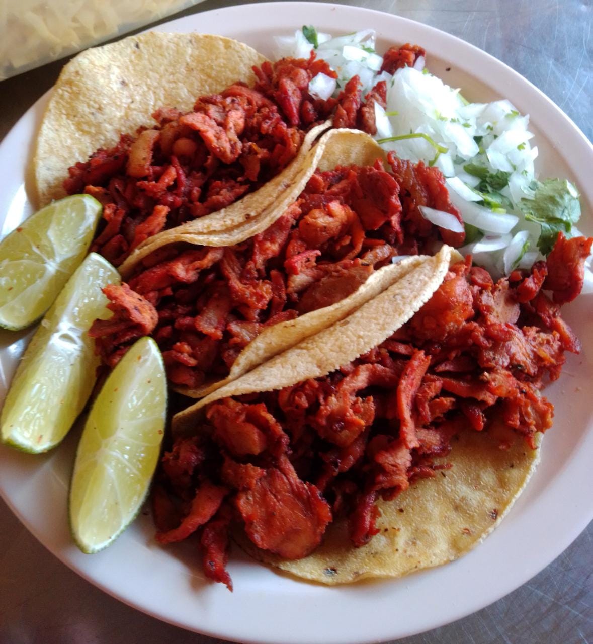 Tortilla de maíz y harina, cebolla picada y salsa.