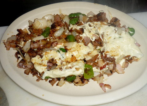 Nacho Personal Pastor porcion pequeña charola hamburguesero contiene tostadas frijol carne de pastor queso manchego jalapeño y piña