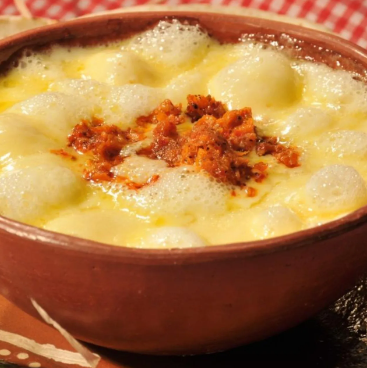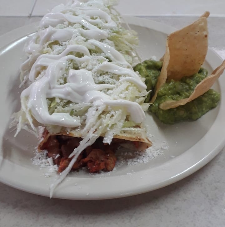 Tortilla, champiñón, guacamole, charro y cebolla asada.