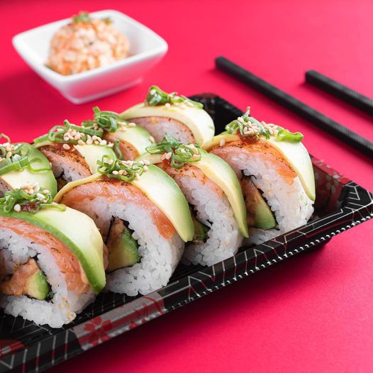 arroz al vapor cubierto de ajonjoli, cebollin, cubos de aguacate y philadelphia con camarón tempura bañado en aderezo spicy.