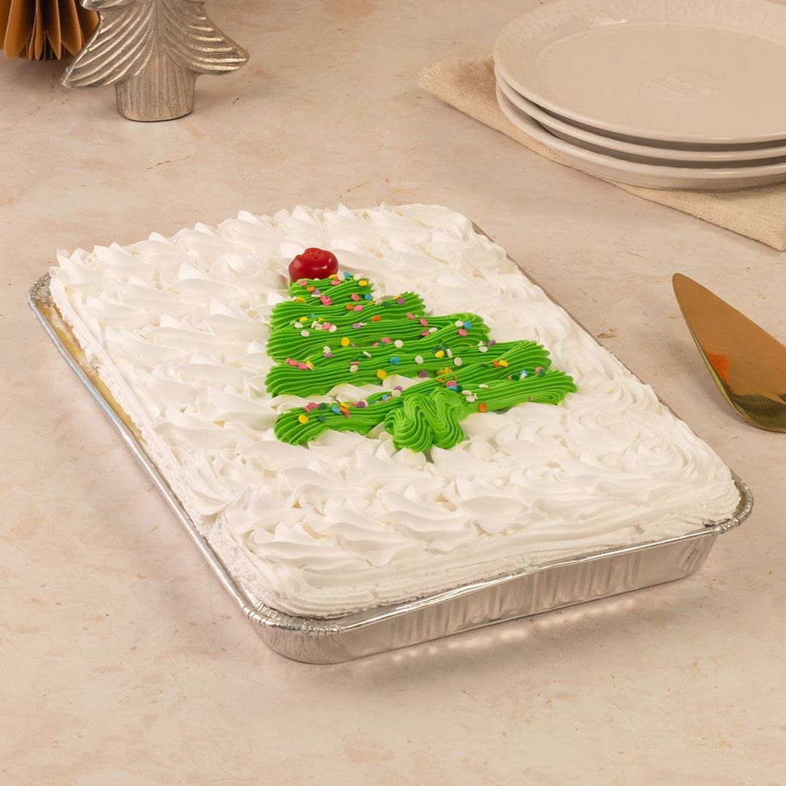 Exquisito pastel con dos rellenos: uno de tres leches y otro de cremoso fudge, bañado con nuestra receta especial de tres leches, cubierta de chantilly con decorado navideño.