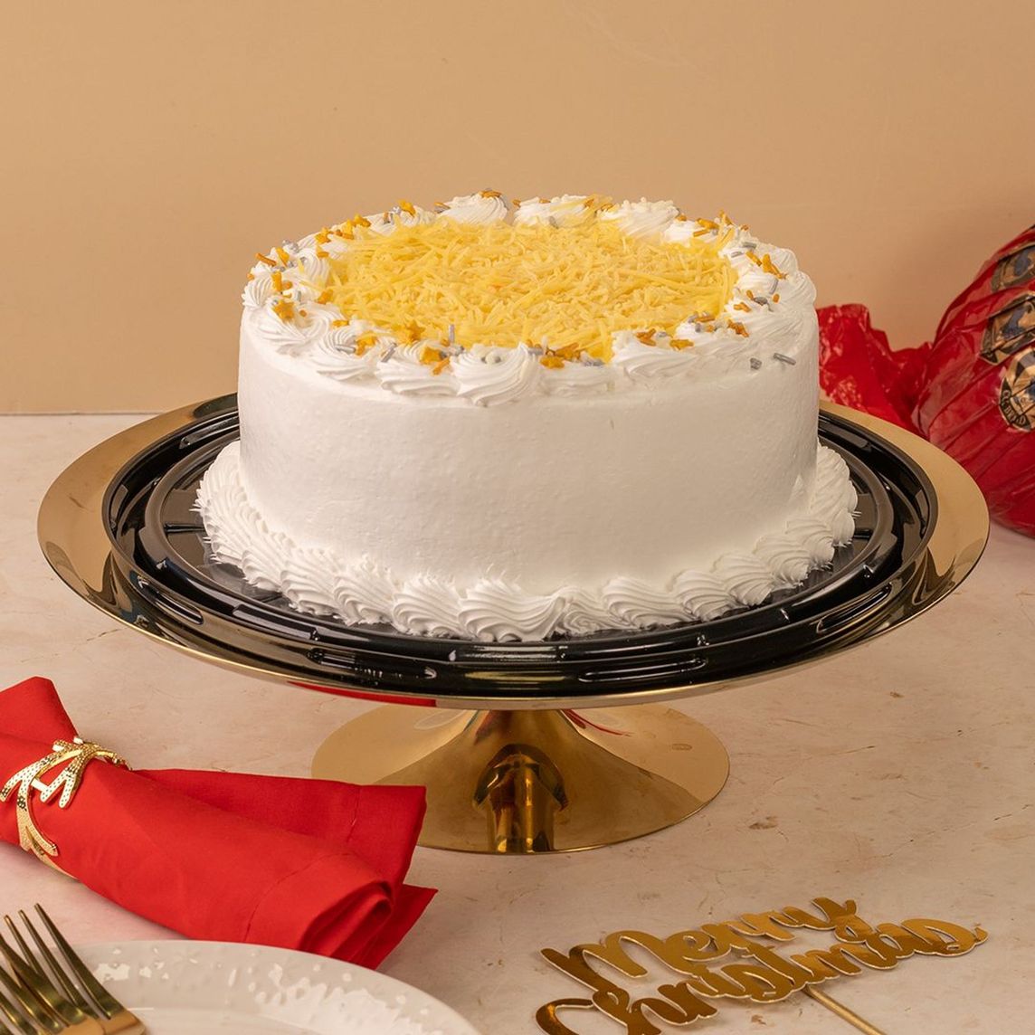 Exquisito pastel relleno de crema de queso de bola, banado con nuestra receta especial de tres leches, decorado con crema tipo chantilly y queso de bola rallado. De 6 a 8 porciones.