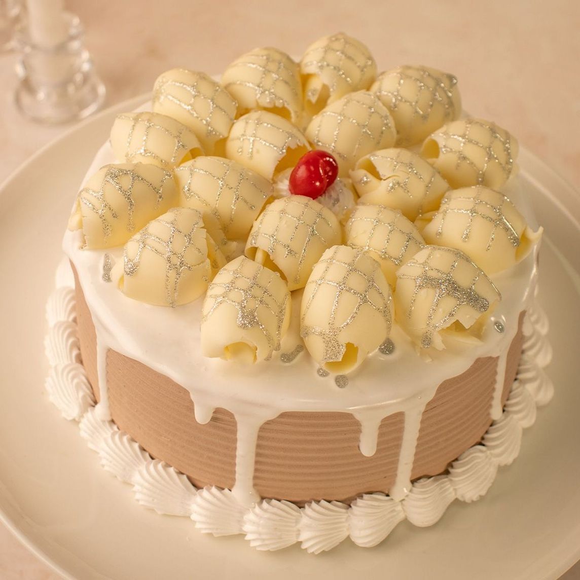 Delicioso pastel elaborado con pan de chocolate, relleno de cremoso fudge, bañado con nuestro jarabe especial, cubierto de chantilly, decorado con finos rollos de chocolate blanco.