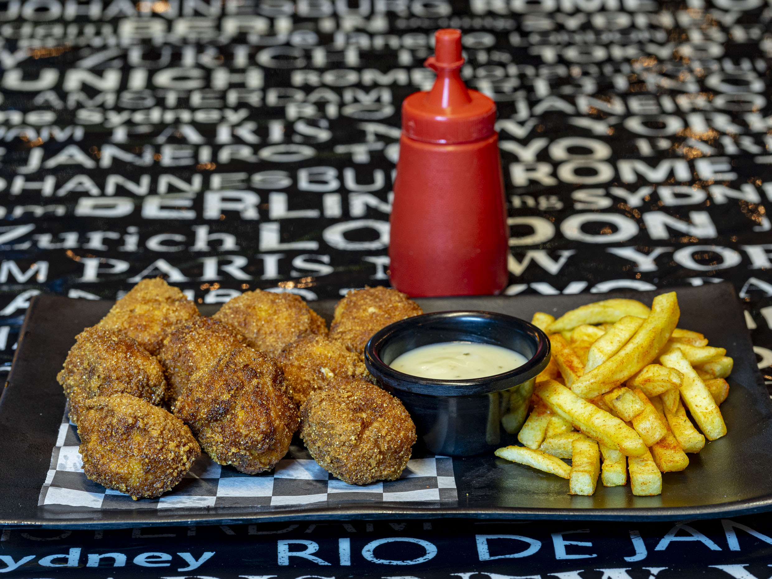 10 Boneless Naturales con aderezos aparte incluye papas a la francesa