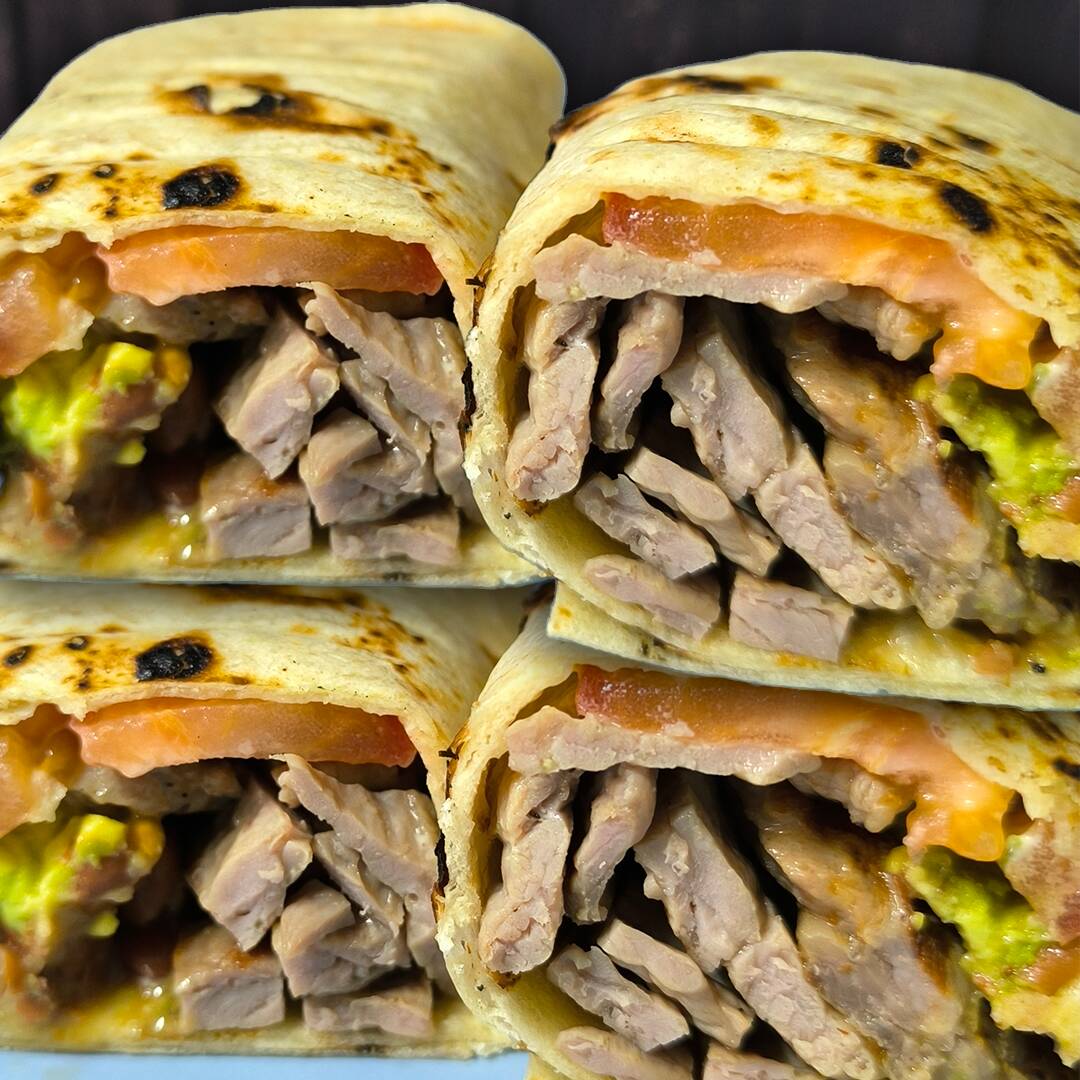 2 burritos Chicken Ranch. Burrito de 300g. Relleno de pollo crujiente, col blanca y zanahoria fresca, bañados en una mezcla de aderezo ranch y un toque de mostaza. Jalapeños y salsa aparte.